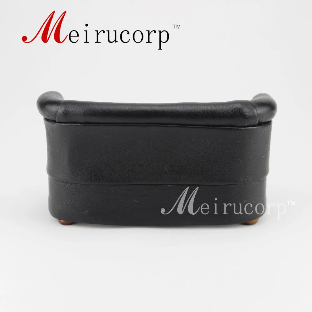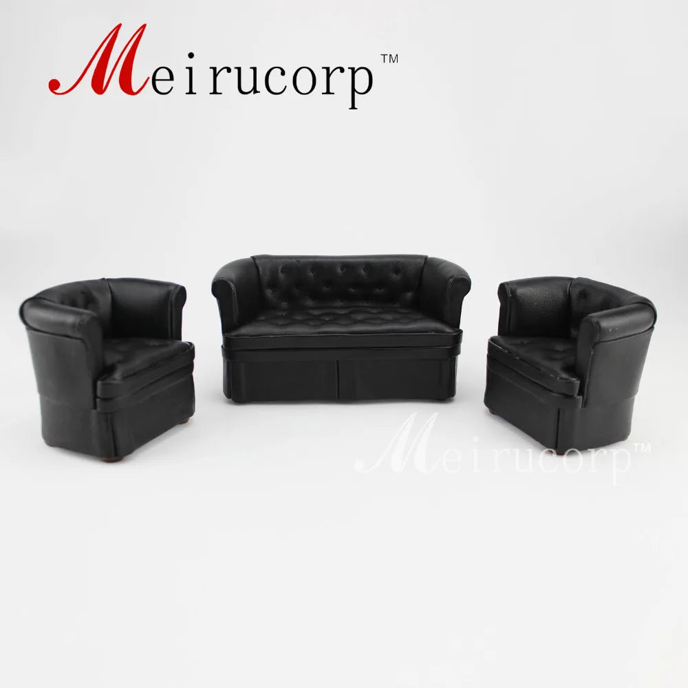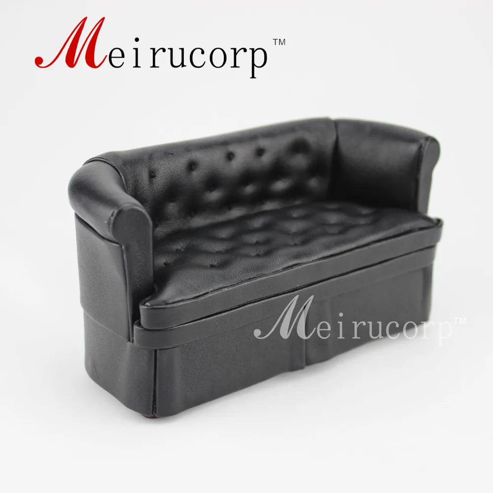 Sofá en miniatura a escala 1:12 exquisitamente elaborado para exhibiciones de casas de muñecas, con un acabado negro auténtico y una construcción de madera precisa.