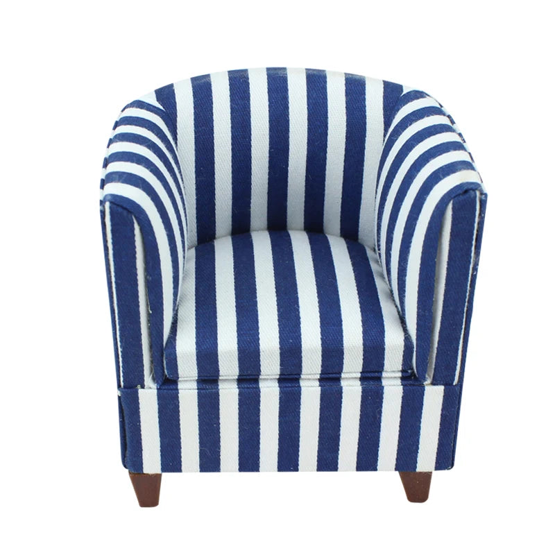 Muebles en miniatura, accesorios para casa de muñecas, escala 1:12, silla a rayas, mesa redonda, muebles de madera, piezas de exhibición