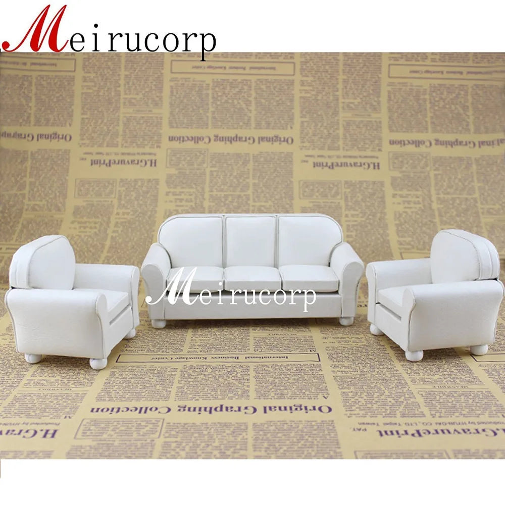 Conjunto de sofá y silla de cuero blanco en miniatura a escala 1:12 (3 piezas)