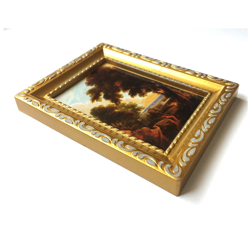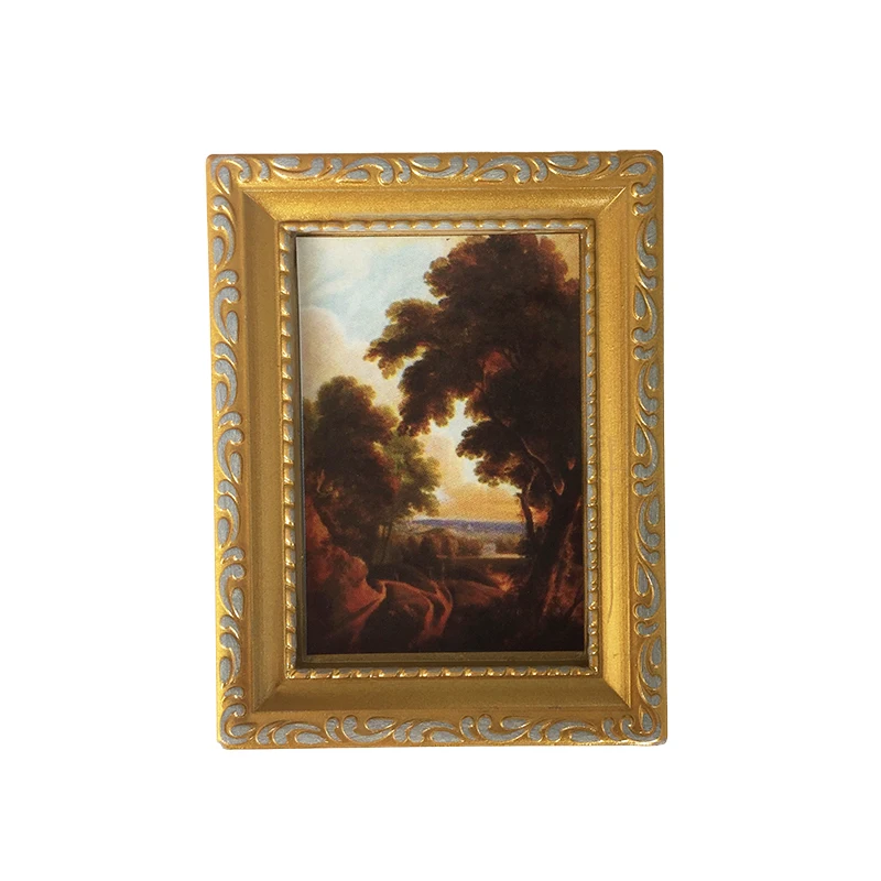 Cuadro enmarcado en dorado en miniatura de casa de muñecas a escala 1:12