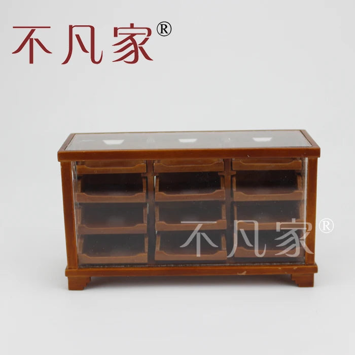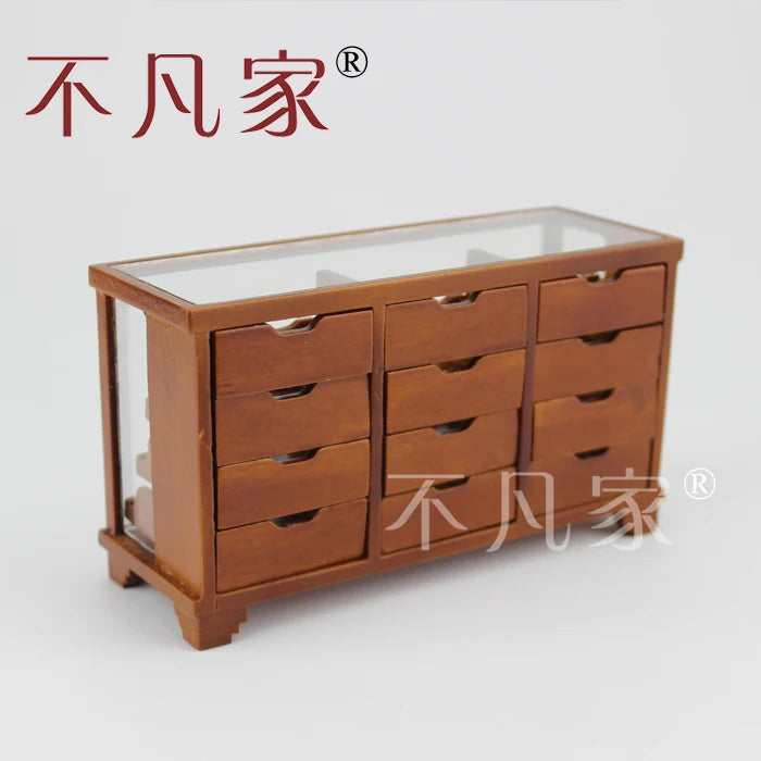 Vitrina de cristal en miniatura para casa de muñecas a escala 1:12 con cajones