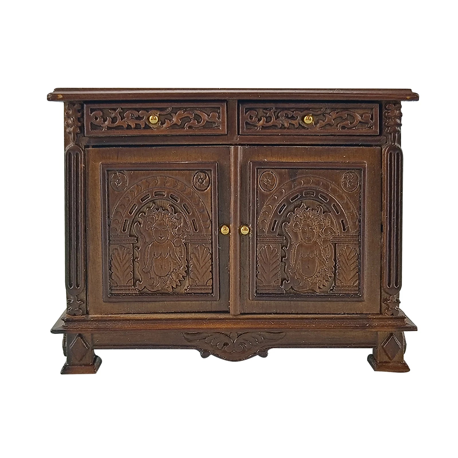 Gabinete auxiliar con retrato tallado a mano en miniatura a escala 1:12
