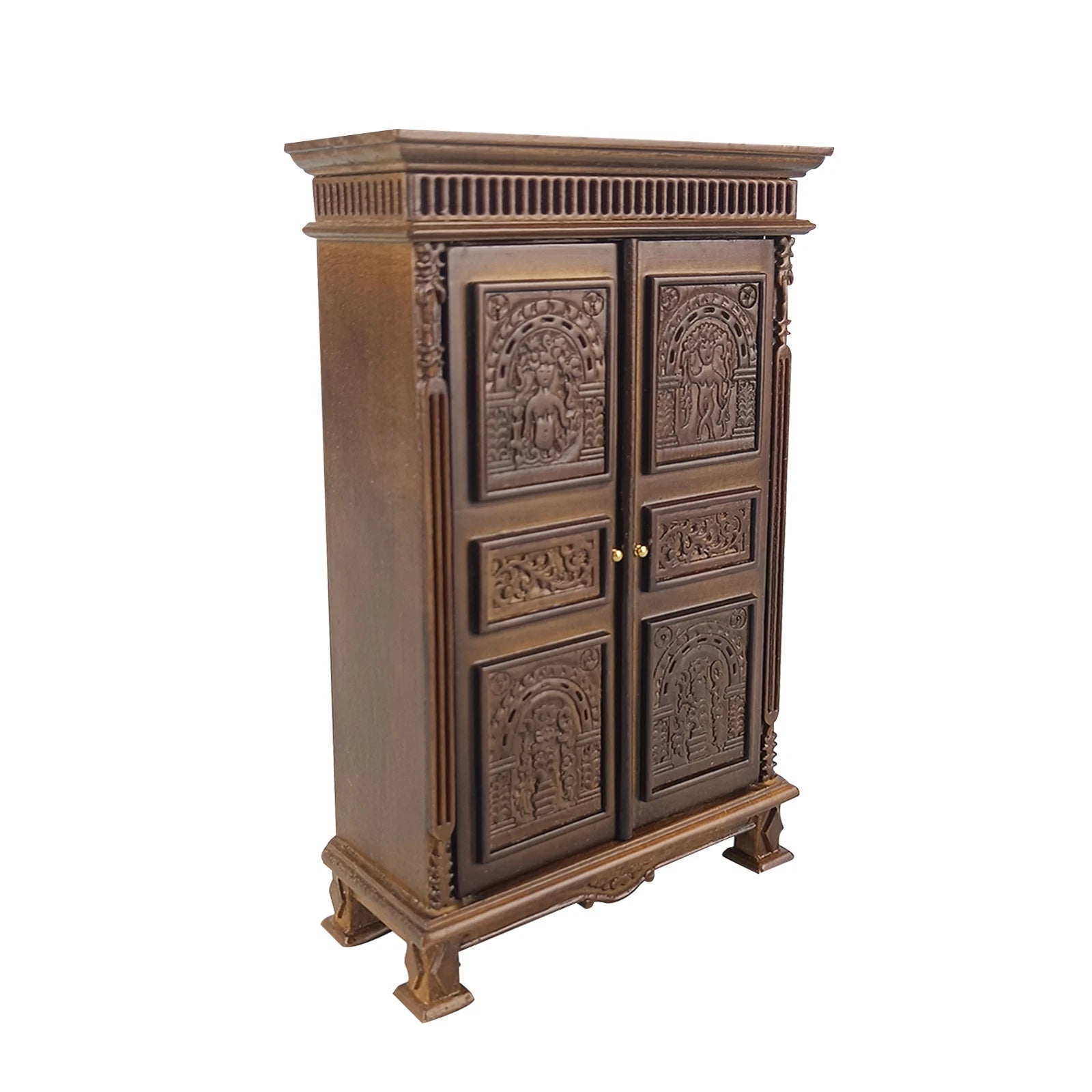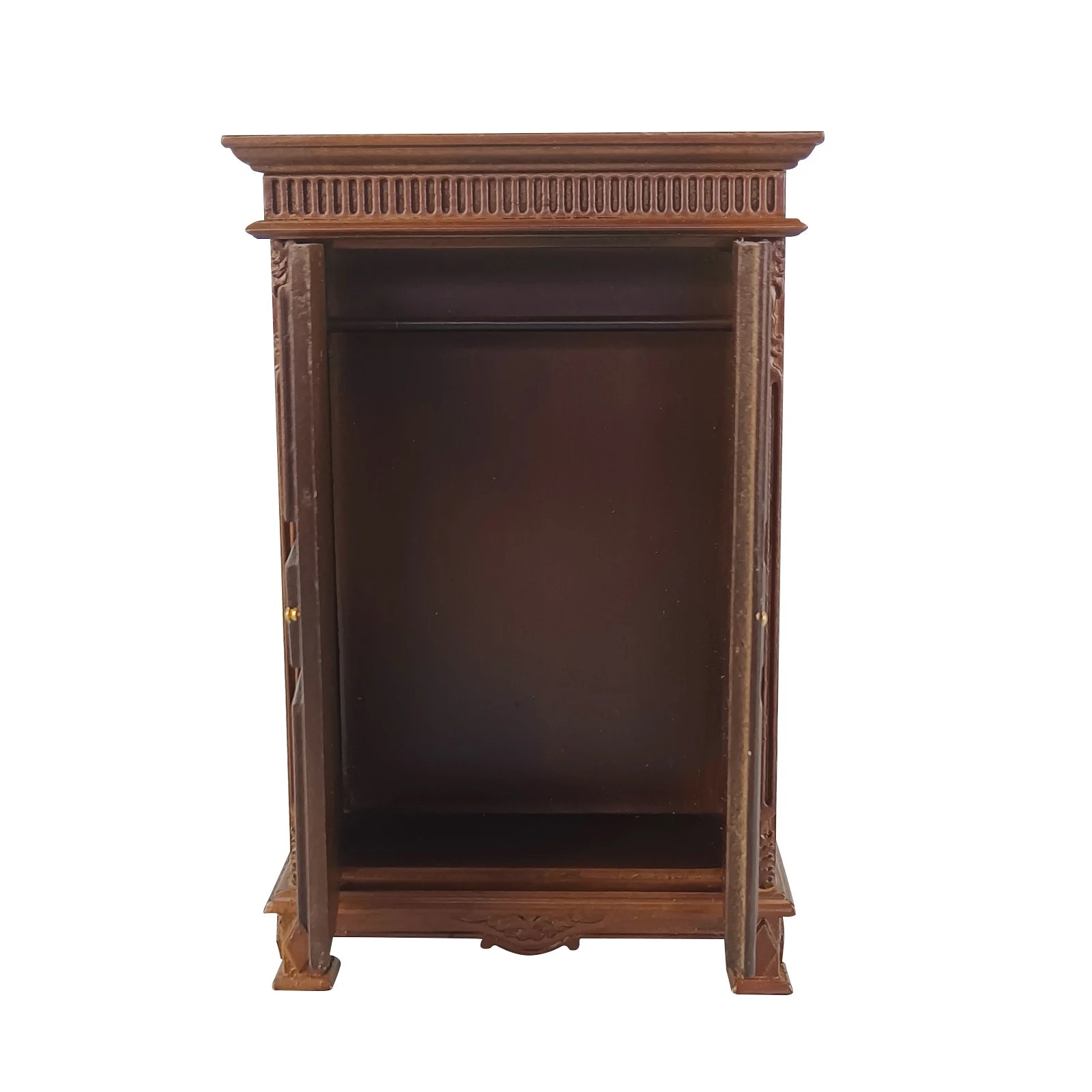 Armario en miniatura de exquisita elaboración para exhibiciones en casas de muñecas a escala 1:12. Fabricado en madera auténtica con detalles tallados a mano. Perfecto para coleccionistas de muebles en miniatura y aficionados a las casas de muñecas.