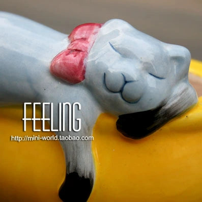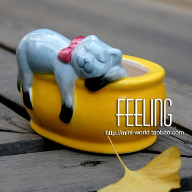 Cuenco de cerámica para gato durmiendo, pintado a mano, a escala 1:12, maceta en miniatura para suculentas, terrario de musgo, accesorio para casa de muñecas