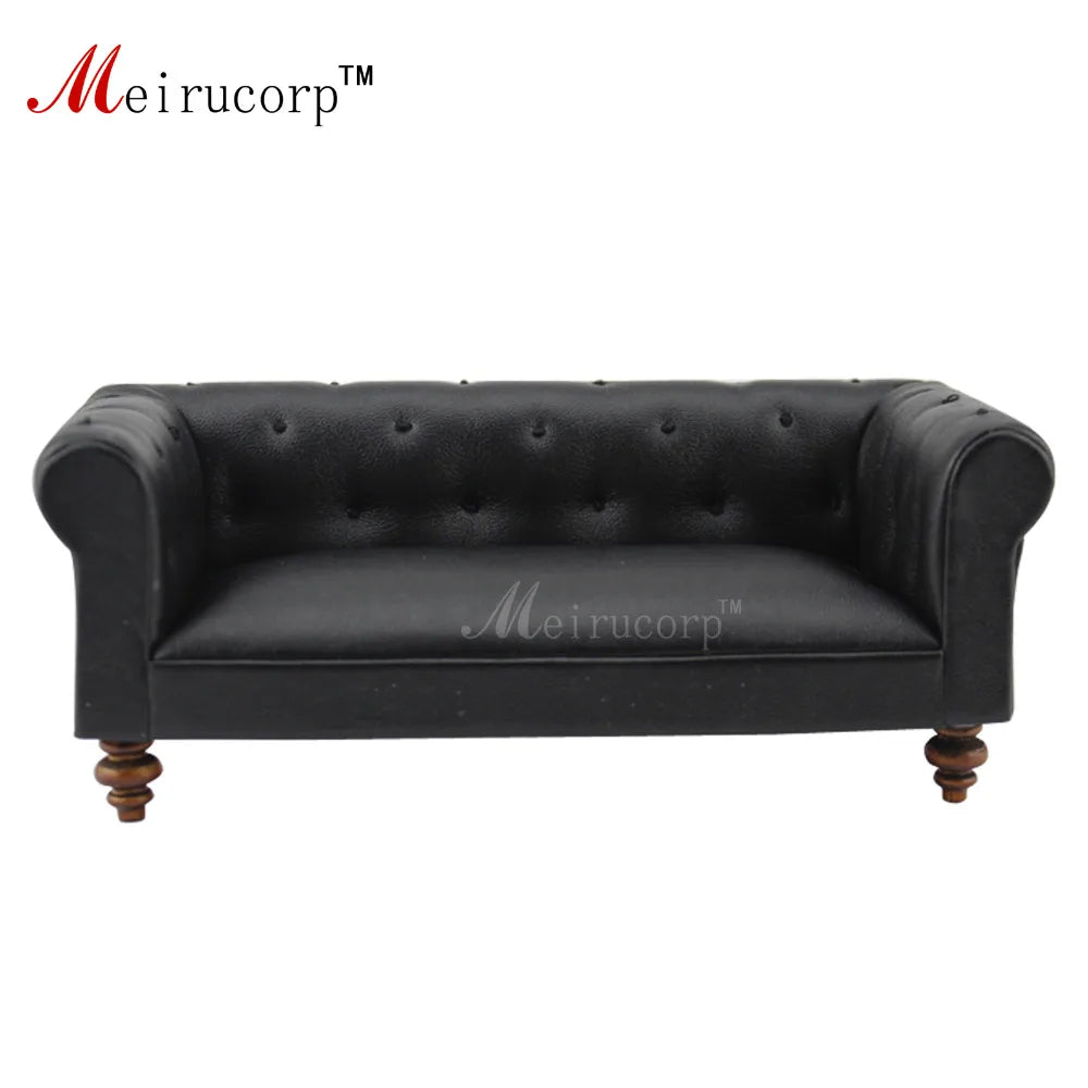 Muebles de casa de muñecas en miniatura hechos a mano a escala 1:12 con asiento de cuero negro