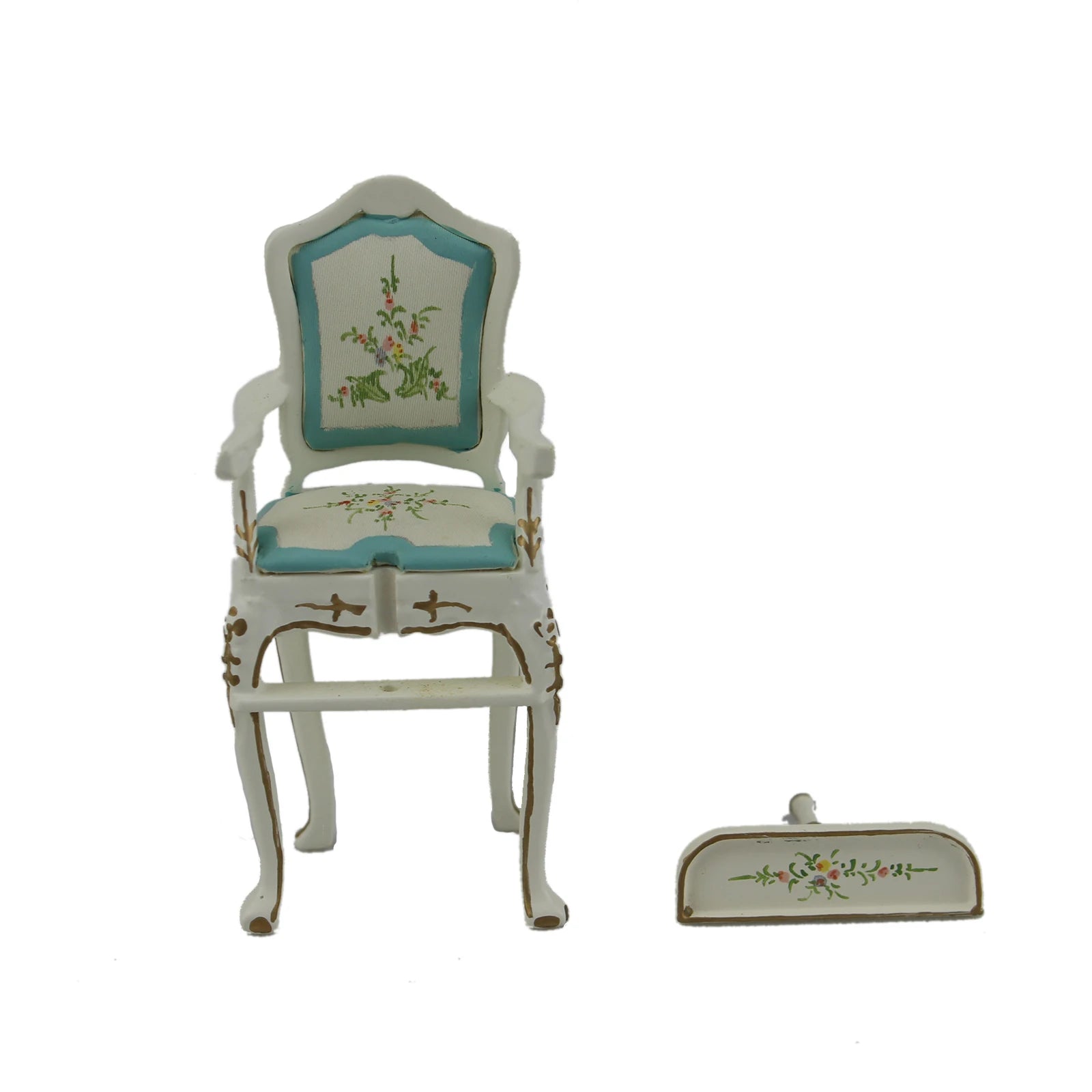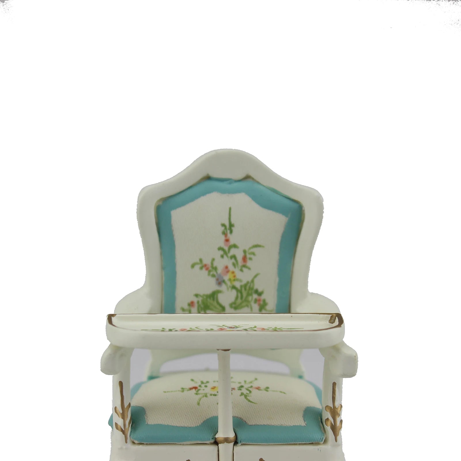 Silla de bebé de lujo pintada de blanco en miniatura a escala 1/12
