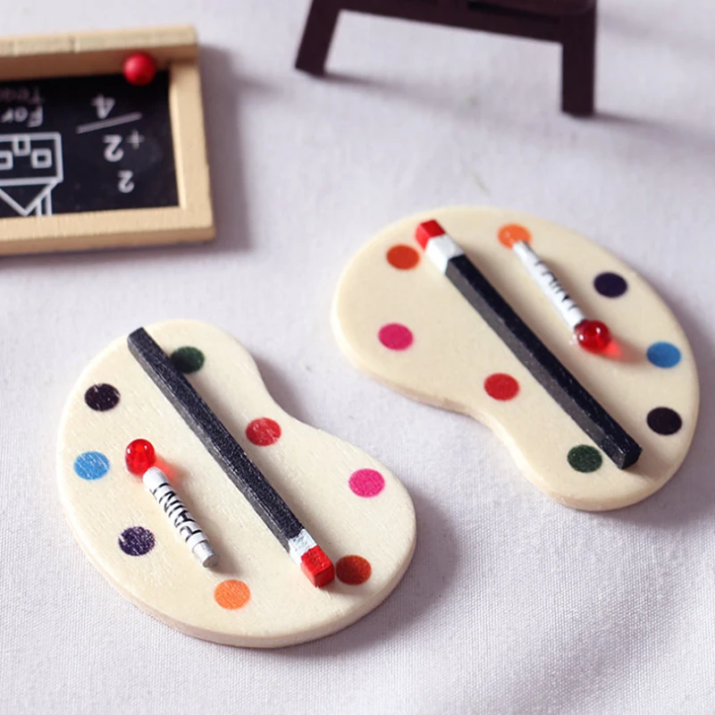 Paleta de colores y juego de pinceles de madera en miniatura a escala 1:12 para decoración y accesorios de casas de muñecas.