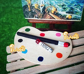 Paleta de colores y pincel para miniaturas de casas de muñecas