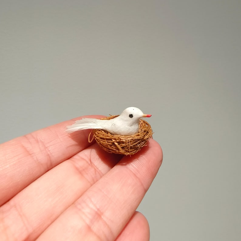 Realza tu casa de muñecas o escena en miniatura con este exquisito modelo de nido de pájaro a escala 1:12. Perfecto para exhibiciones de muñecas BJD, Blythe y GSC, este delicado accesorio añade un encanto realista a la decoración del hogar, el jardín o las hadas. Elaborado con intrincados detalles, crea una atmósfera de bosque caprichosa en tu mundo en miniatura.