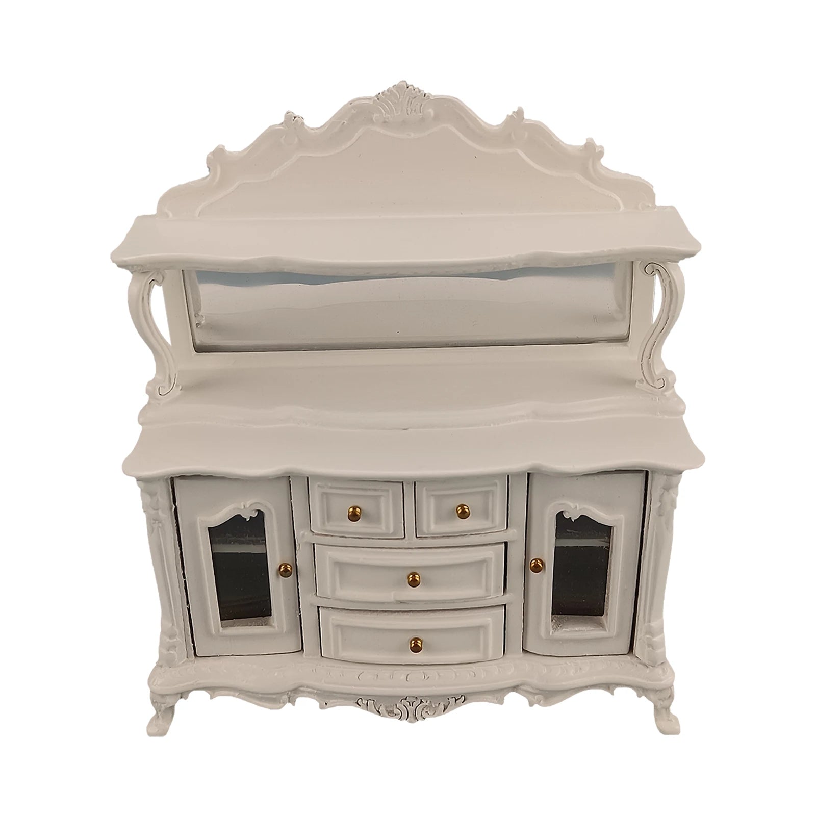 Muebles de comedor en miniatura a escala 1:12, aparador blanco tallado a mano, casa de muñecas en miniatura