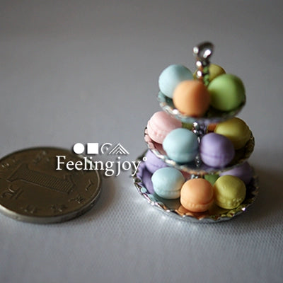 Escena de panadería en miniatura para casa de muñecas a escala 1:12 con exhibición de macarrones, muebles en miniatura