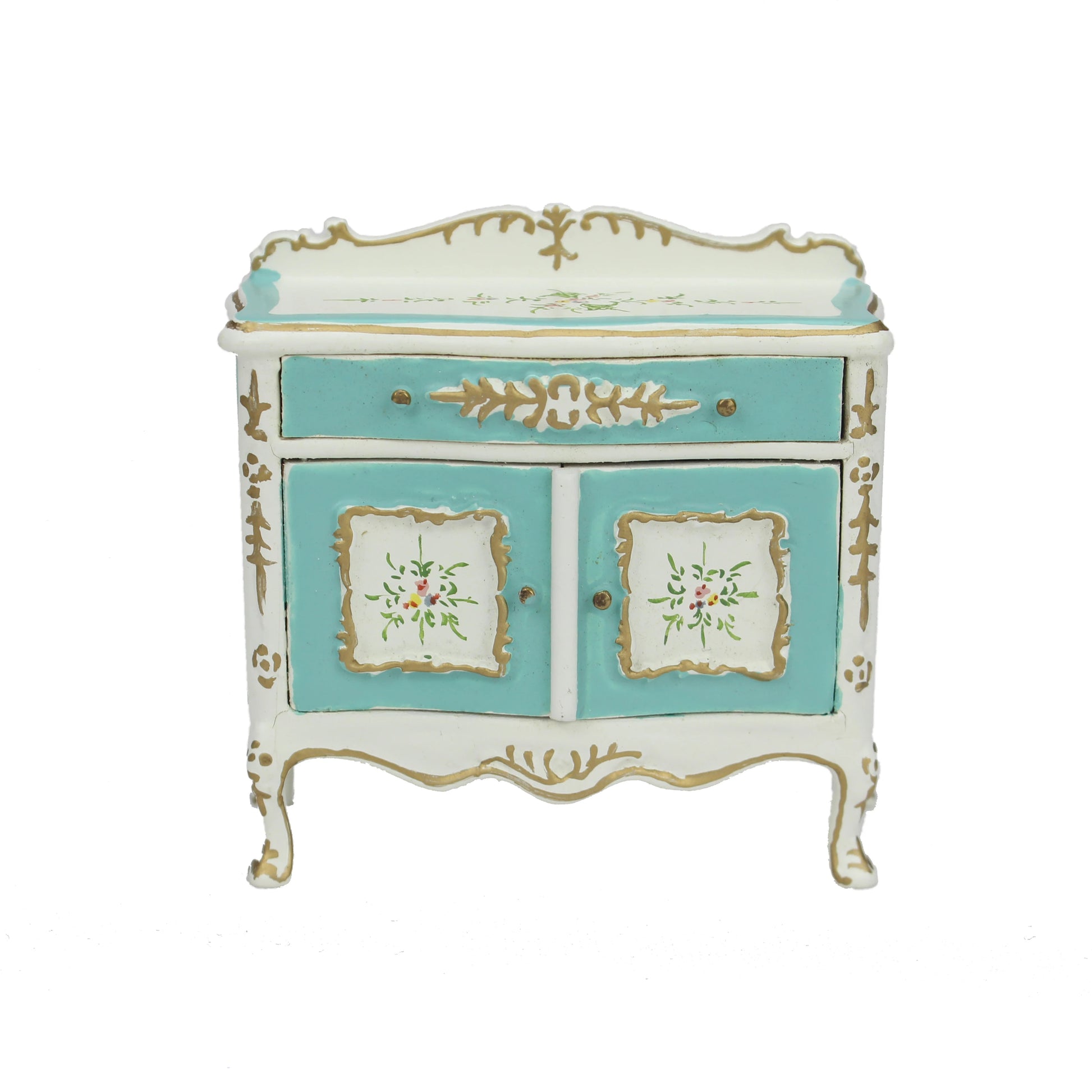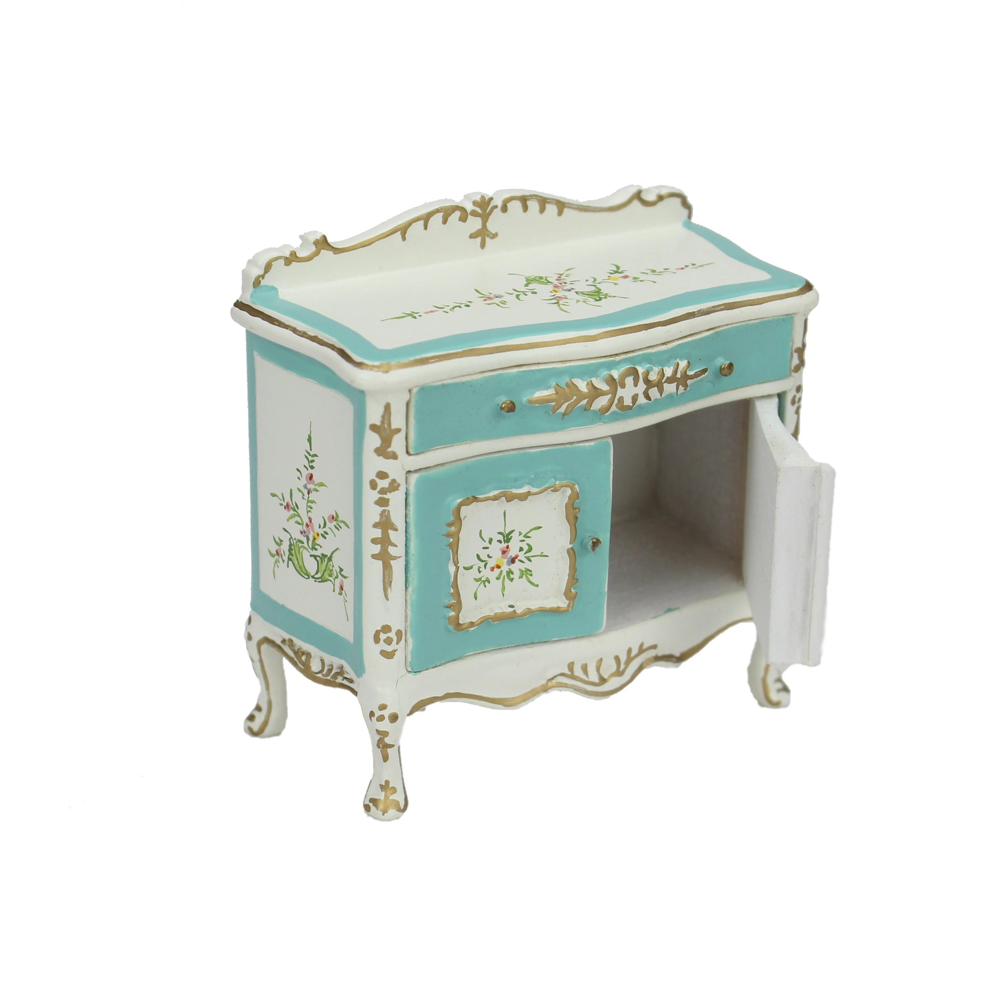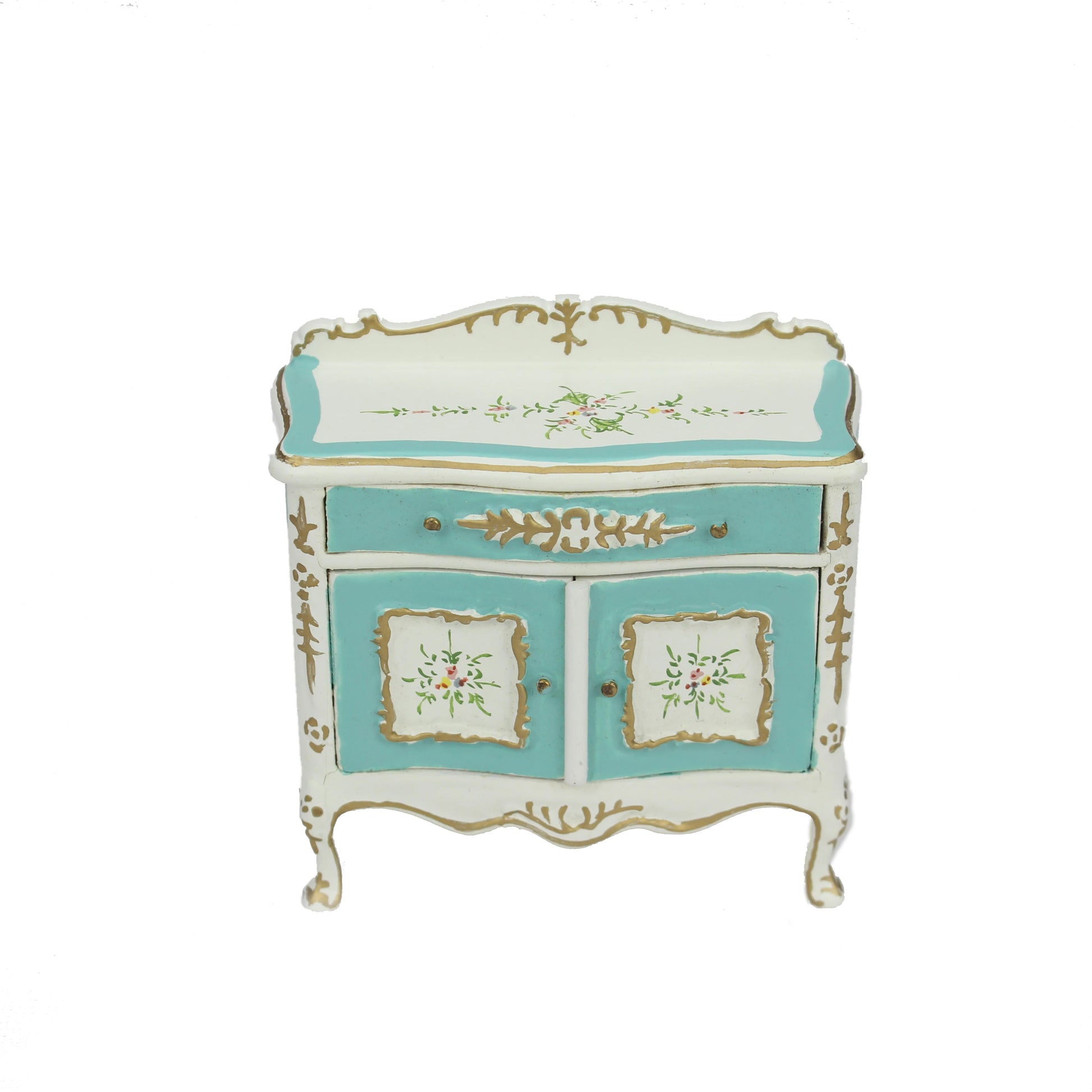 Casa de muñecas en miniatura a escala 1:12, armario decorativo de madera azul y blanco para habitación de bebé