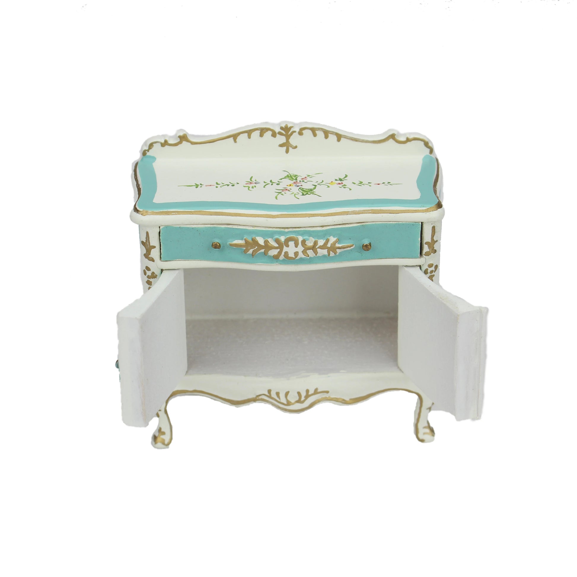 Mueble para pañales de bebé pintado en blanco para casa de muñecas a escala 1/12