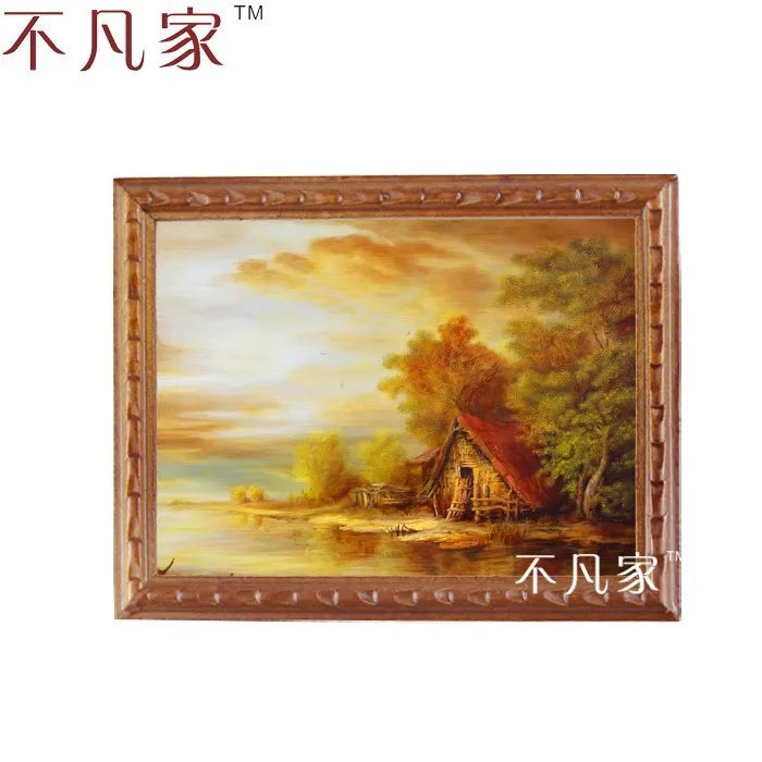 Casa de muñecas en miniatura a escala 1:12, casa pequeña clásica con marco de pintura al óleo de arroyo, decoración del hogar