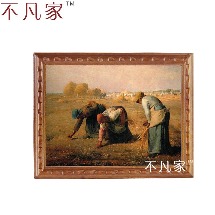 Una delicada pintura al óleo en miniatura a escala 1:12 que representa a agricultores clásicos en un entorno agrícola, perfecta para la decoración de casas de muñecas.