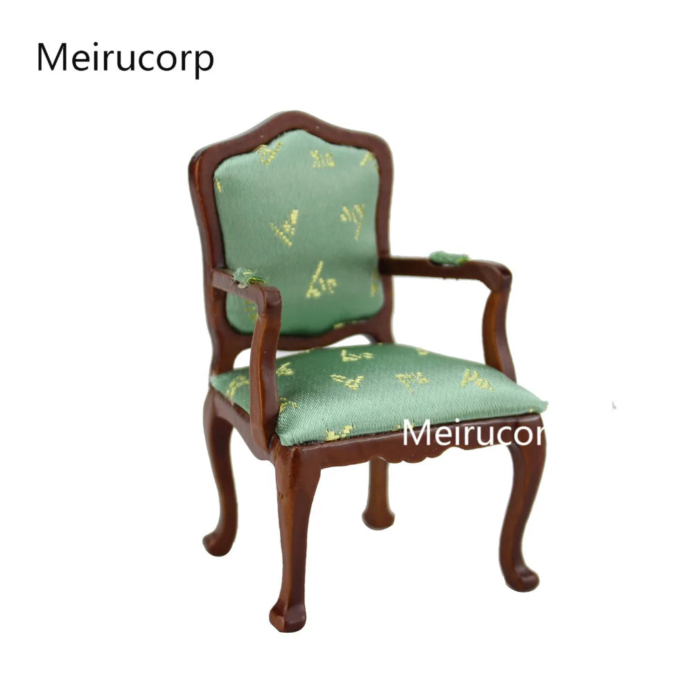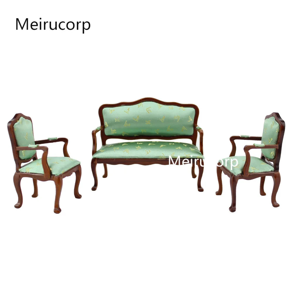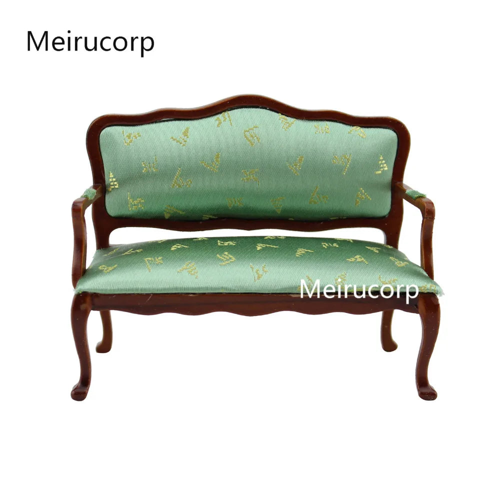 Casa de muñecas en miniatura a escala 1:12 con silla y sofá tapizados en verde