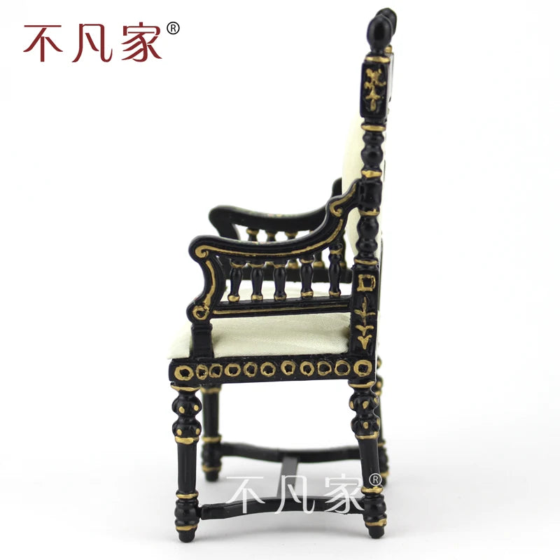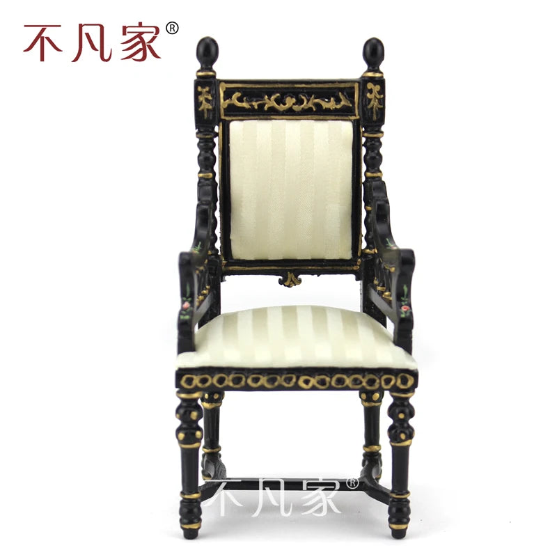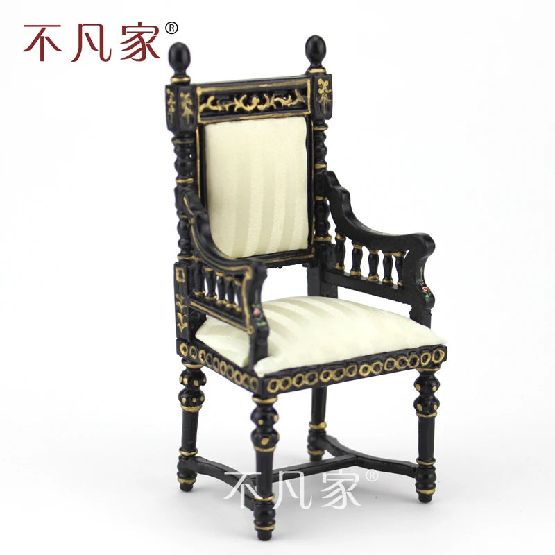 Muebles en miniatura, silla de casa de muñecas, escala 1:12, pintados a mano, miniatura de madera, artículo de colección, muebles de maqueta, silla ornamentada