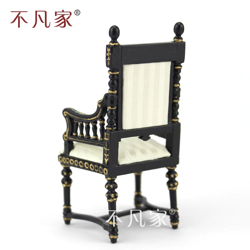 Muebles en miniatura para casa de muñecas a escala 1/12: Silla ornamentada pintada a mano en negro