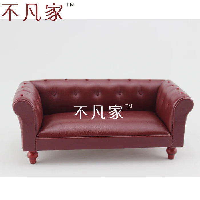 Sofá de cuero en miniatura, exquisitamente elaborado, para exhibiciones en casas de muñecas a escala 1:12. Perfecto para coleccionistas de muebles y accesorios en miniatura.