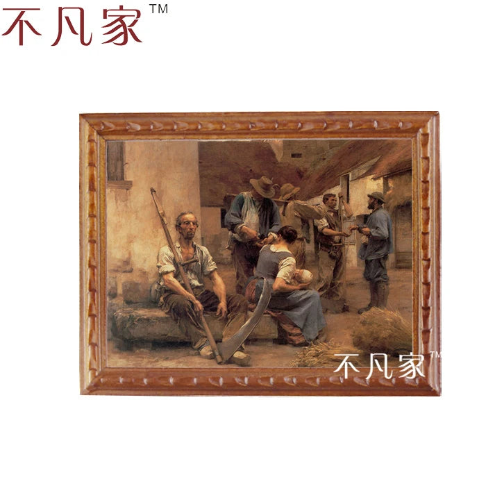 Exquisita pintura al óleo en miniatura que representa a agricultores clásicos, diseñada para exhibiciones de casas de muñecas a escala 1:12.