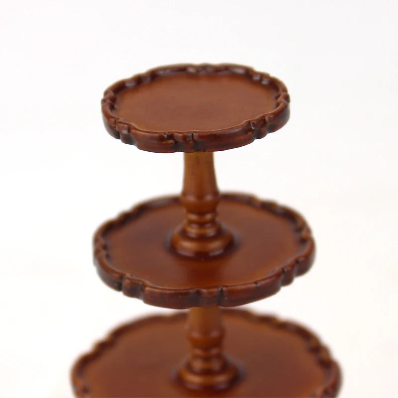 Exquisito soporte para tarta de nogal en miniatura a escala 1/12