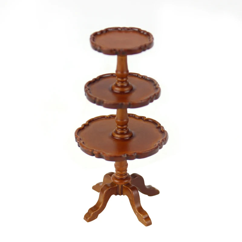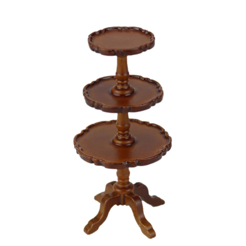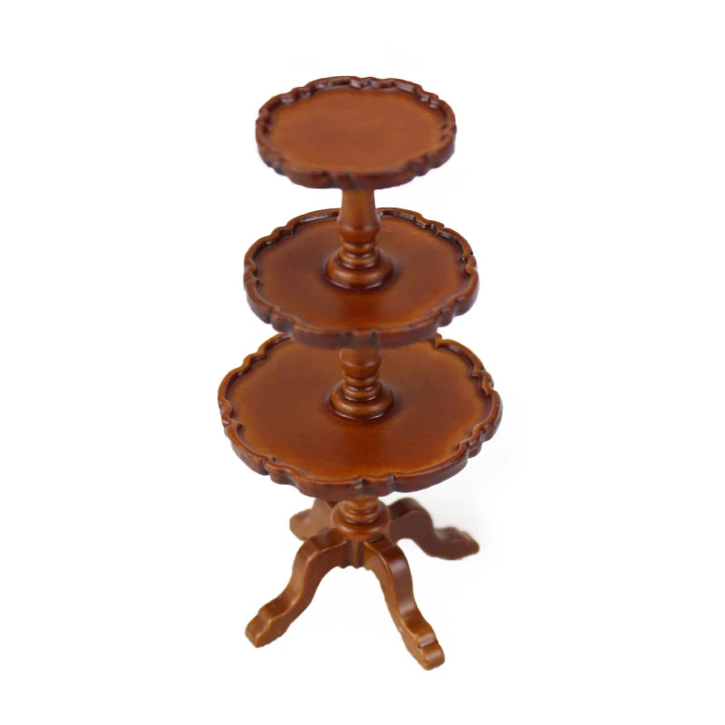 Soporte para tarta de nogal para casa de muñecas en miniatura a escala 1:12: un elegante y detallado mueble.