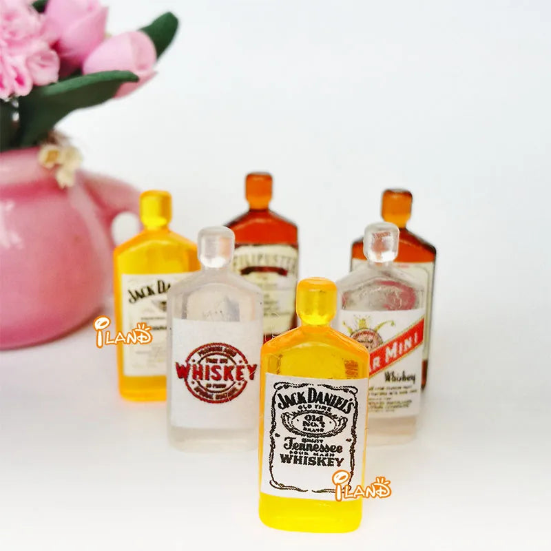 Accesorios de casa de muñecas en miniatura, modelo a escala 1:12, botellas de bebidas de plástico, juego de vino y whisky, juguetes de decoración de cocina.
