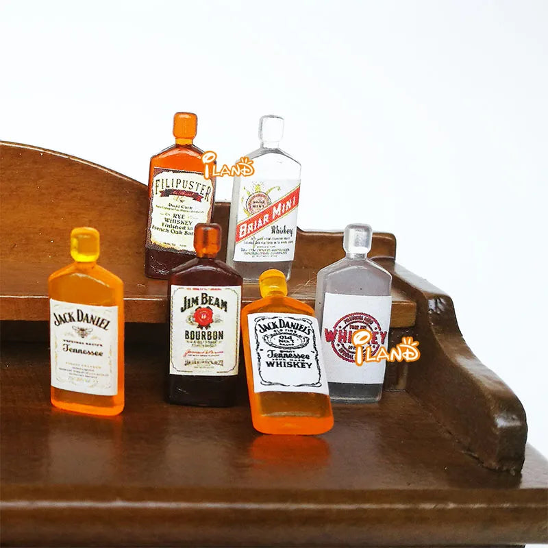 Juego de botellas de vino y whisky en miniatura para casa de muñecas a escala 1:12 para decoración de cocina y modelo de juguete.