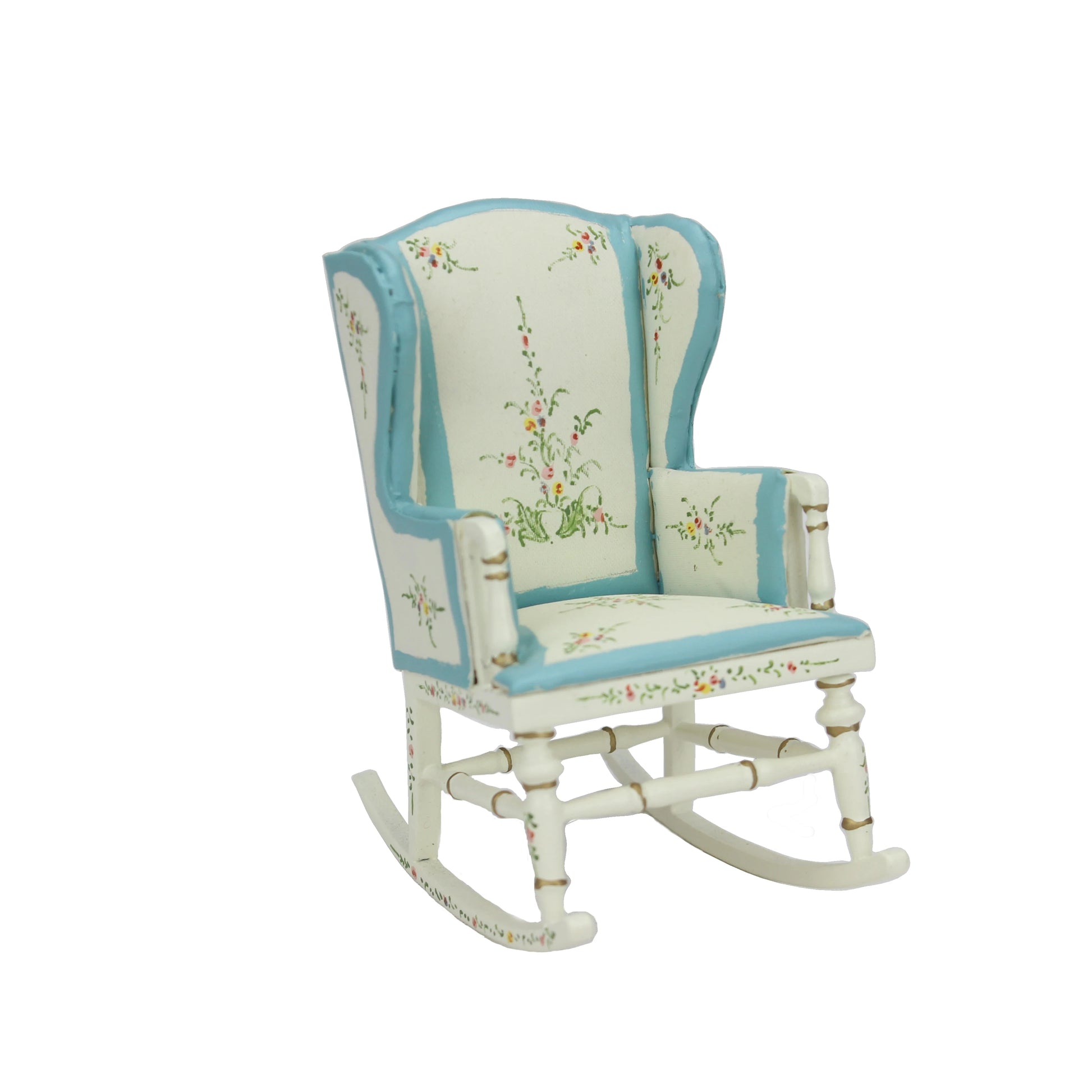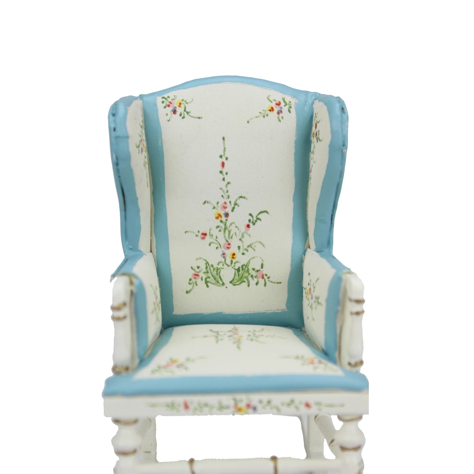 Mecedora con alas florales en miniatura a escala 1:12 para decoración de casas de muñecas