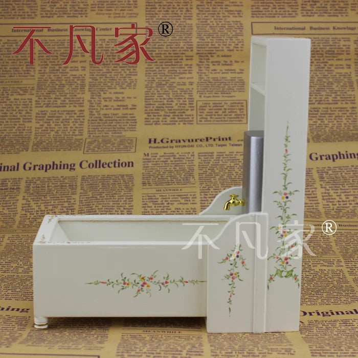 Bañera plegable en miniatura a escala 1:12, pintada a mano, color blanco, muebles para casa de muñecas