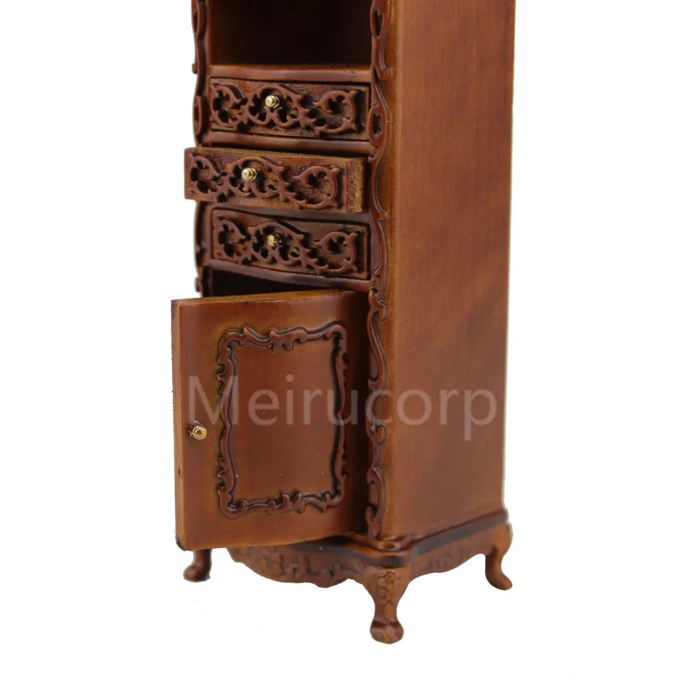 Este mueble auxiliar en miniatura a escala 1:12 presenta exquisitos detalles grabados a mano, elaborado en madera para entusiastas y coleccionistas de casas de muñecas. Con unas medidas de 5,3 x 4,2 x 16,5 cm, esta delicada pieza requiere un manejo cuidadoso.