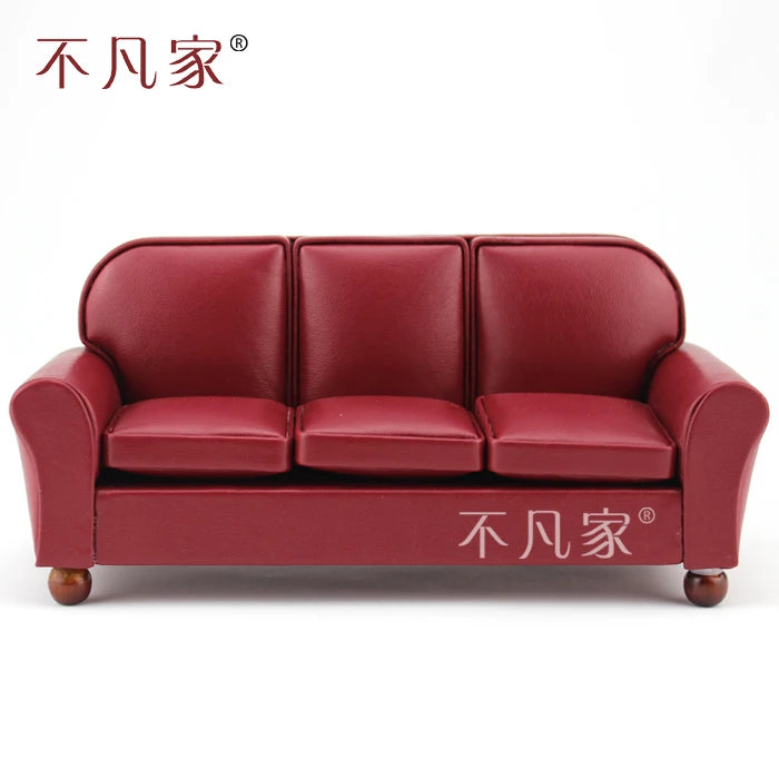 Sofá en miniatura de exquisita elaboración para exhibiciones en casas de muñecas. Mueble a escala 1:12 con detalles auténticos. Su construcción en madera de alta calidad garantiza su durabilidad para coleccionistas y aficionados.