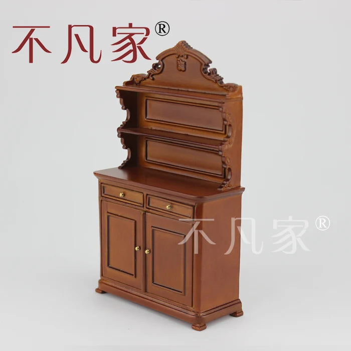 Vitrina de madera en miniatura a escala 1:12 para objetos coleccionables de casas de muñecas - Muebles retro tallados a mano