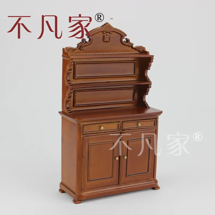 Vitrina de madera en miniatura tallada a mano para coleccionistas de casas de muñecas. Mueble retro a escala 1:12 con una artesanía precisa.