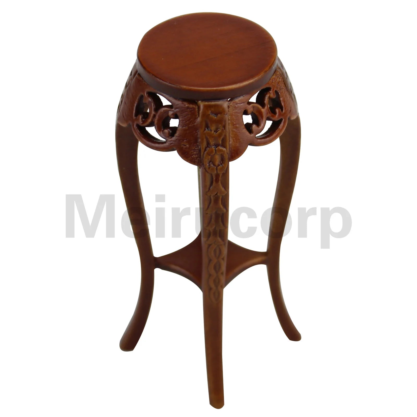 Un estante de flores de madera, meticulosamente tallado a mano, diseñado para exhibiciones en casas de muñecas. Esta miniatura a escala 1:12 presenta una auténtica artesanía con un delicado diseño de estante redondo.