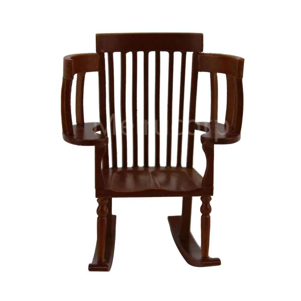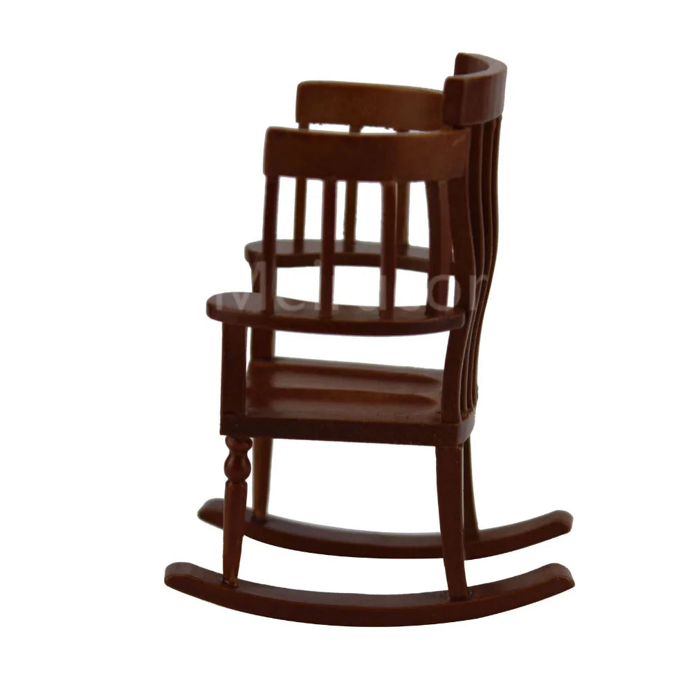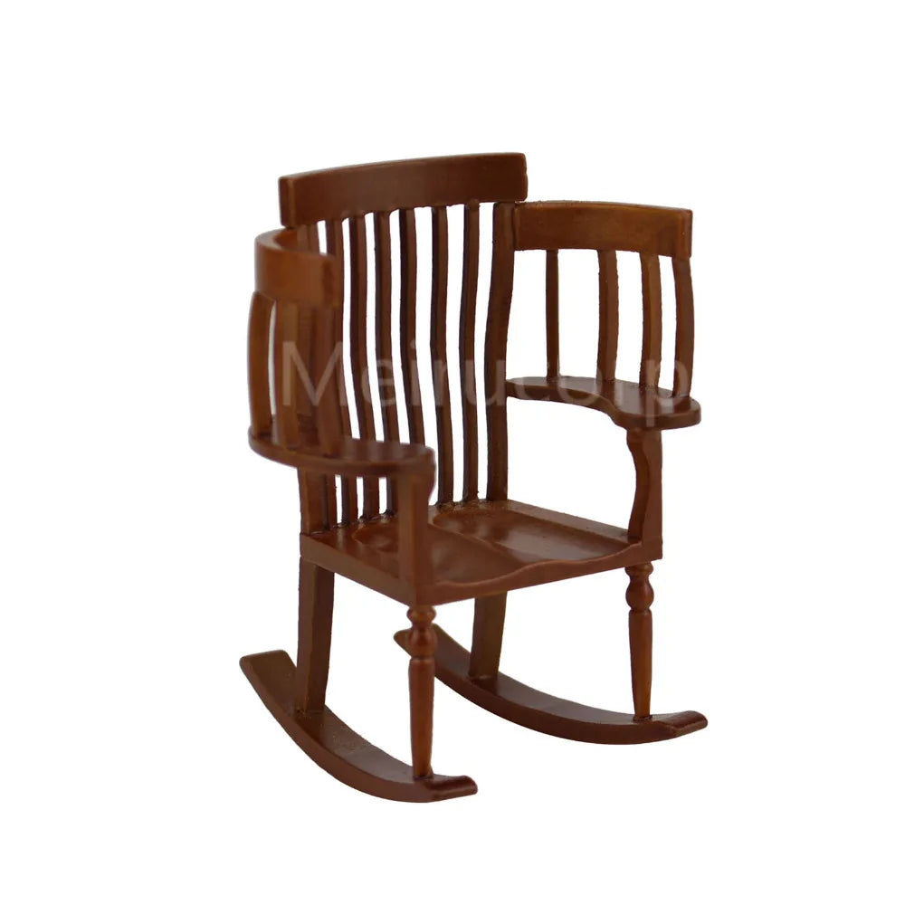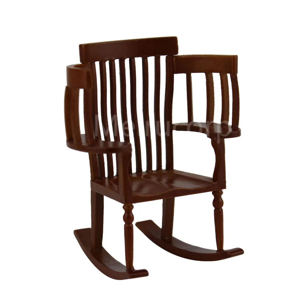 Mueble en miniatura para casa de muñecas, exquisitamente elaborado a escala 1:12. Esta detallada mecedora presenta una construcción de madera auténtica con proporciones precisas.