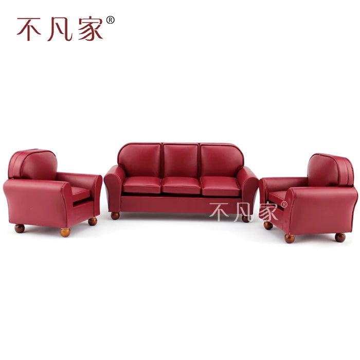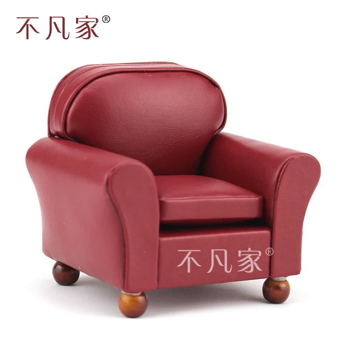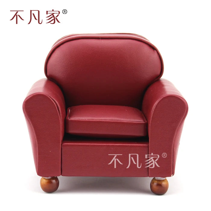 Sillón de terciopelo rojo para casa de muñecas, muebles en miniatura, escala 1:12