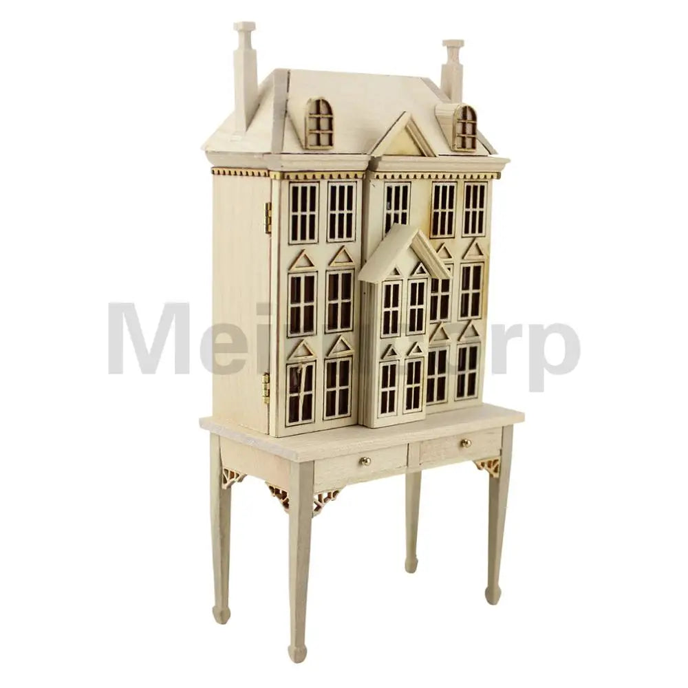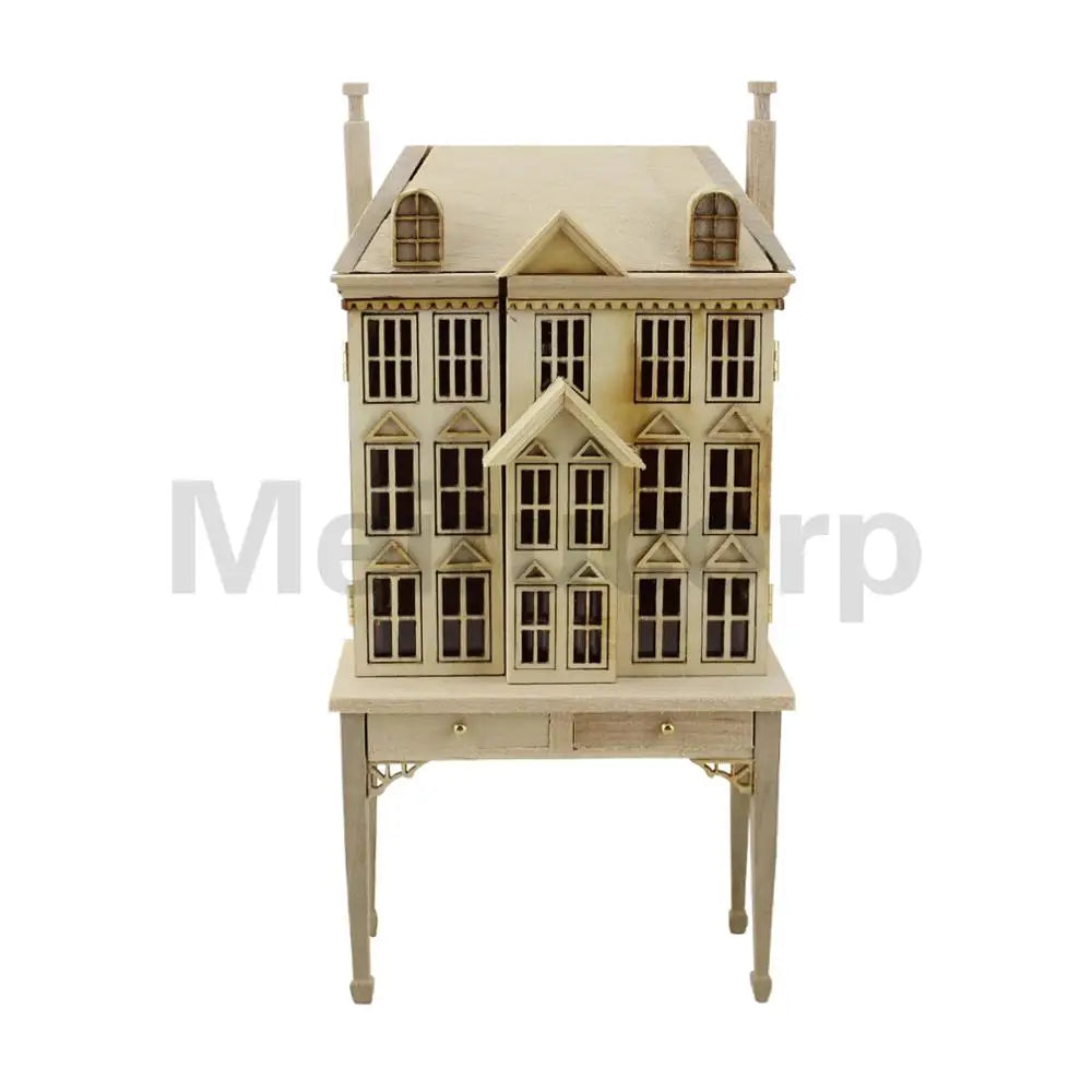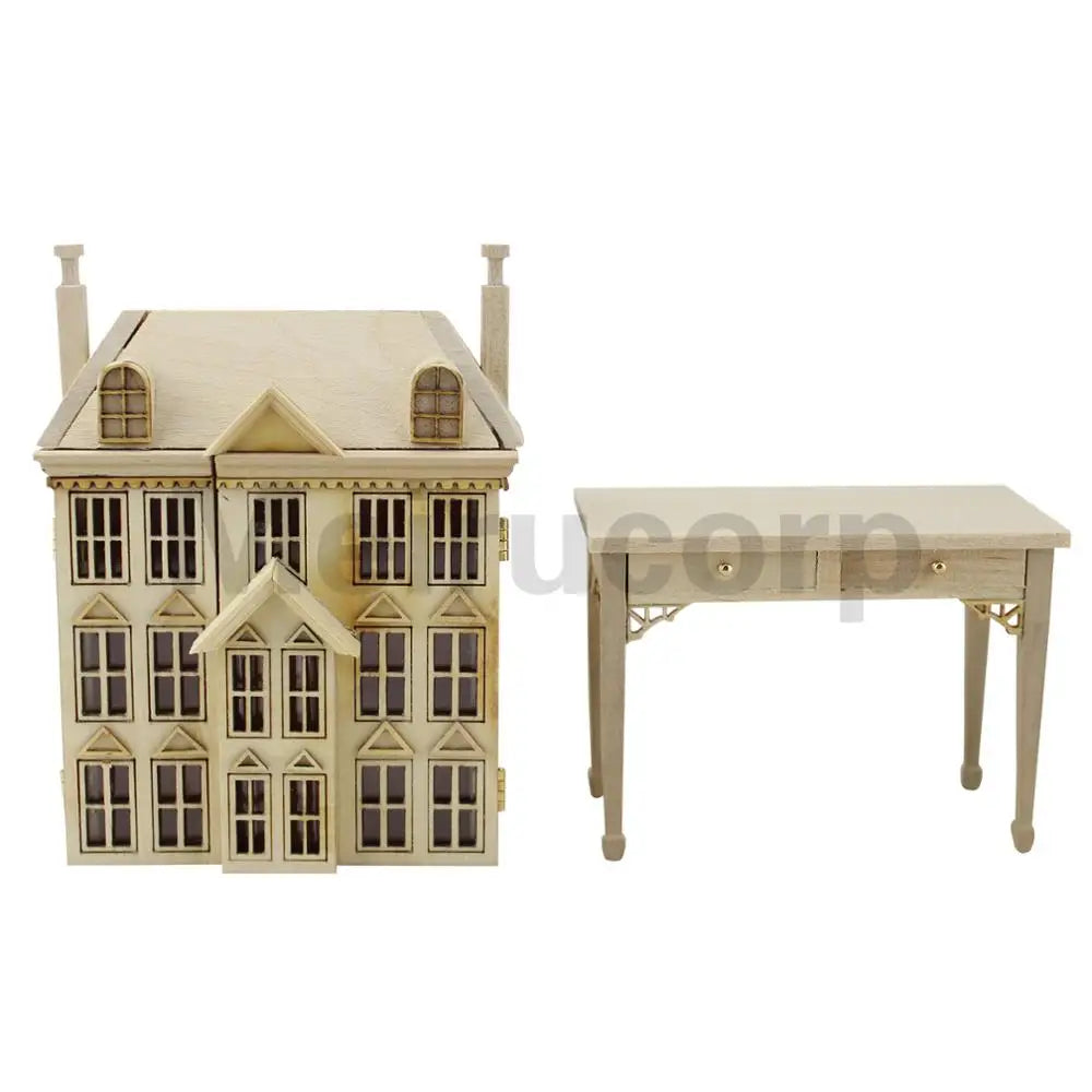 Casa de muñecas en miniatura, escala 1:12, casa de muñecas de madera, tallada a mano, pieza de exhibición, coleccionable, sin pintar, delicada