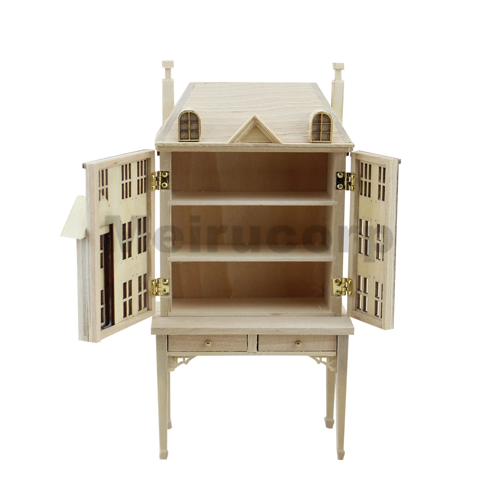 Casa de muñecas en miniatura sin pintar a escala 1:12, armario de madera con estantería de exhibición