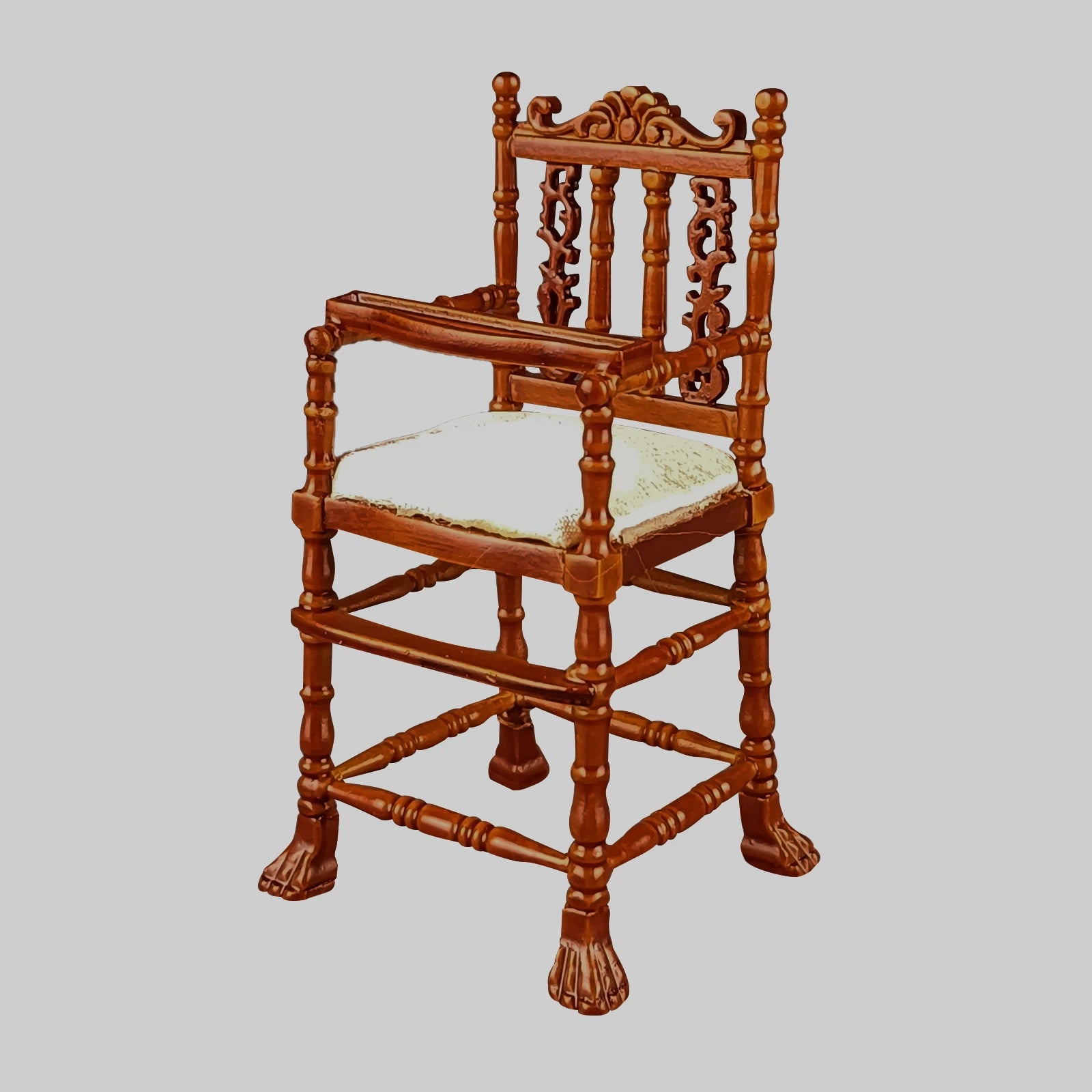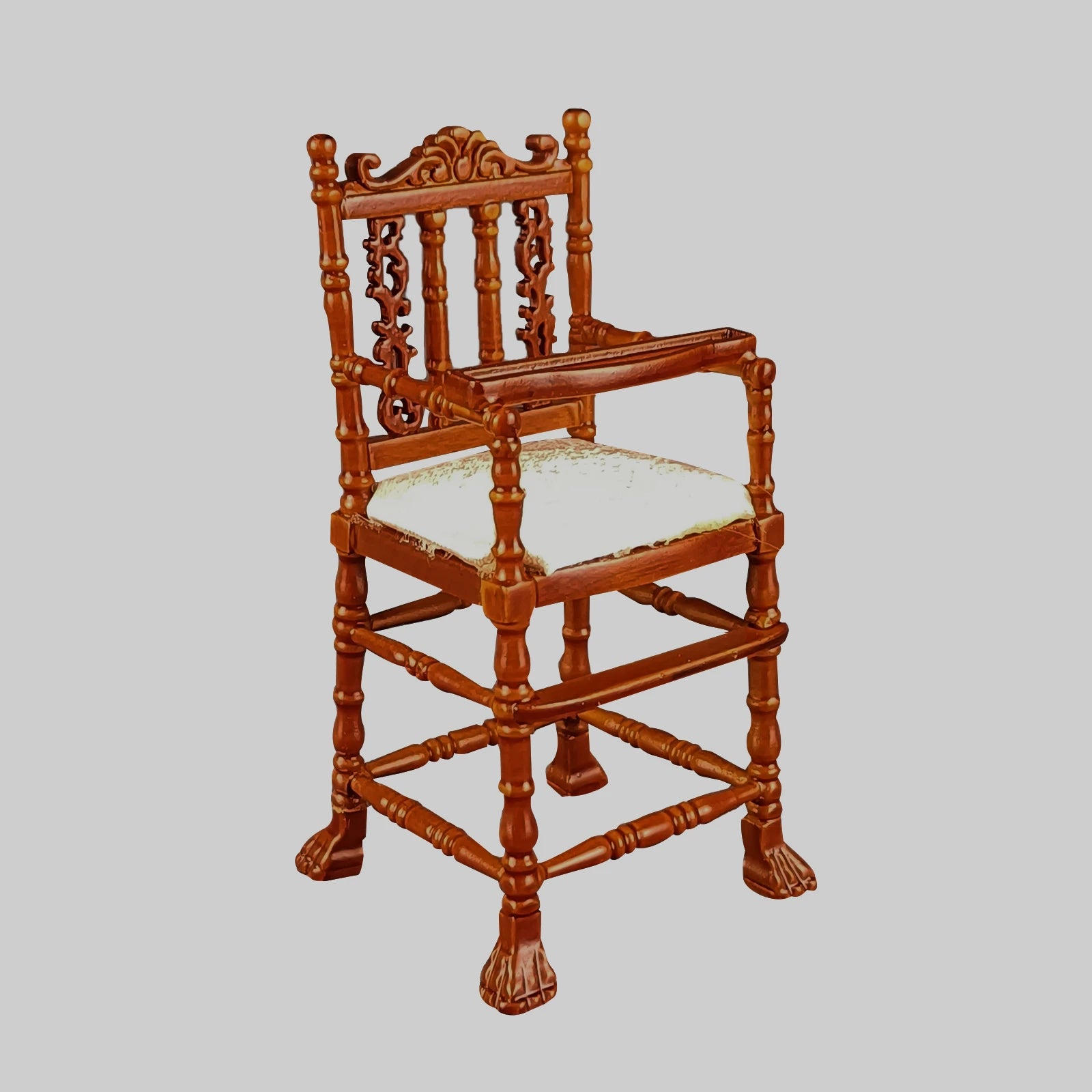 Trona de madera vintage para bebés, escala 1:12 - Modelo de muebles en miniatura