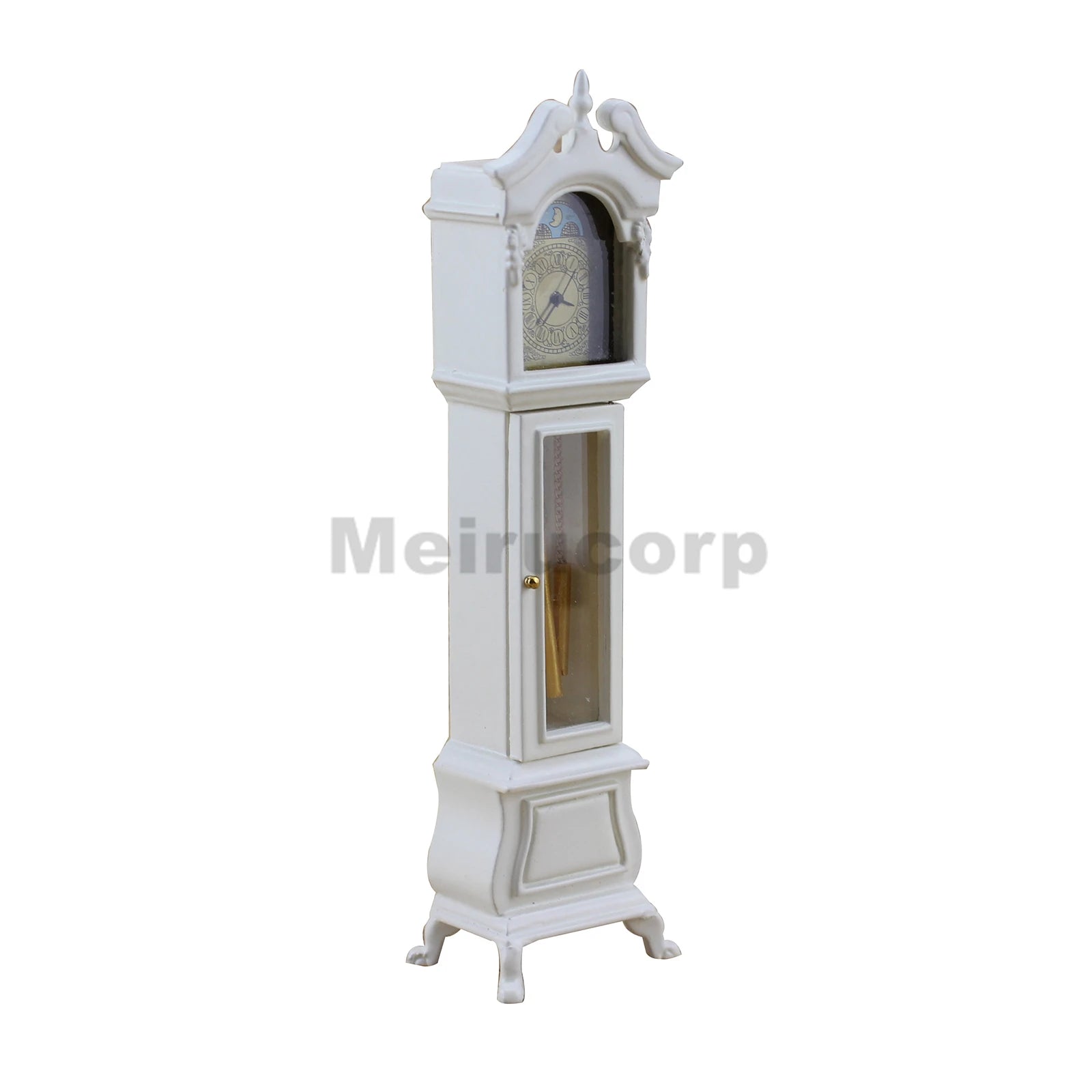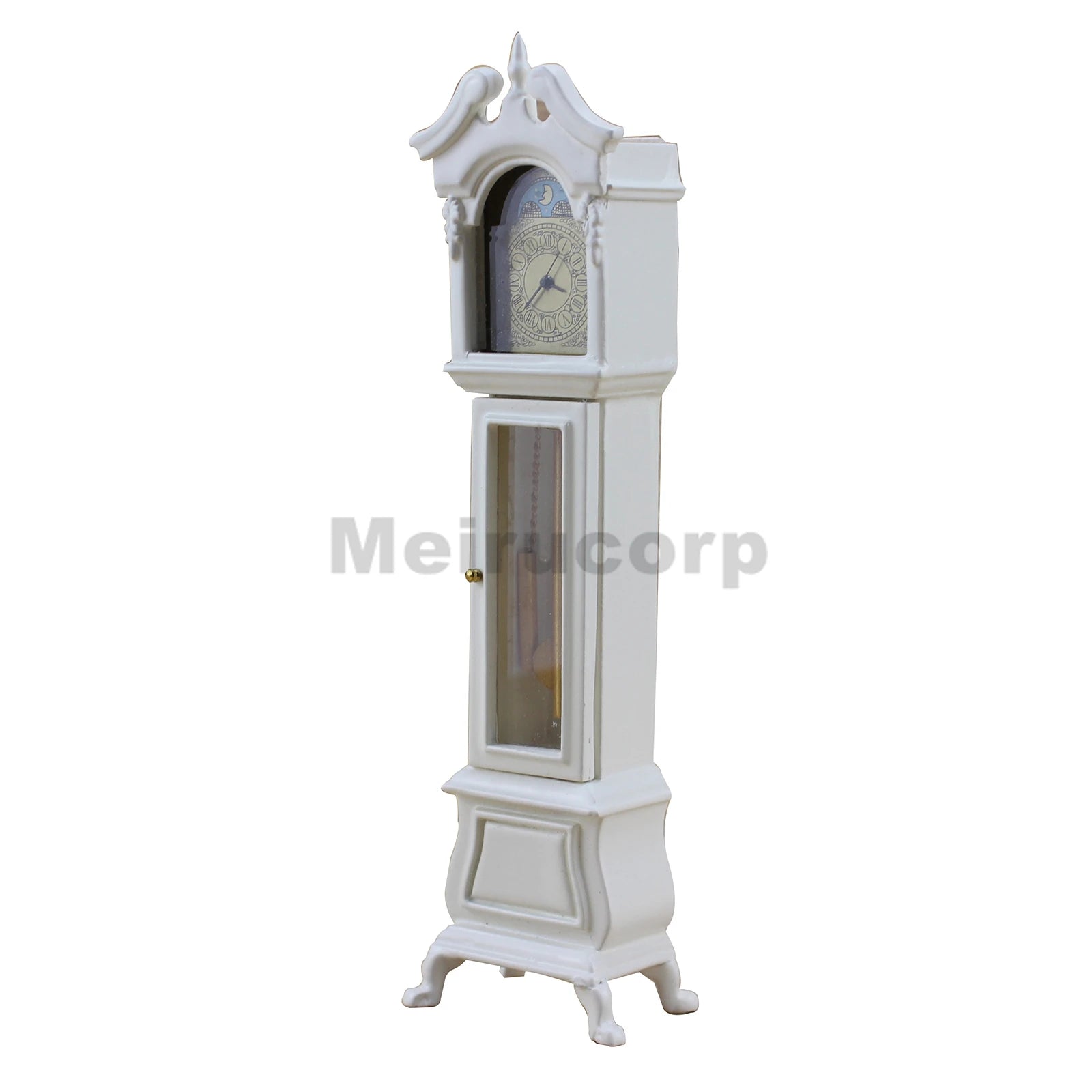 Reloj en miniatura, decoración para casa de muñecas, escala 1:12, reloj de suelo blanco, miniatura de madera, accesorio para casa de muñecas