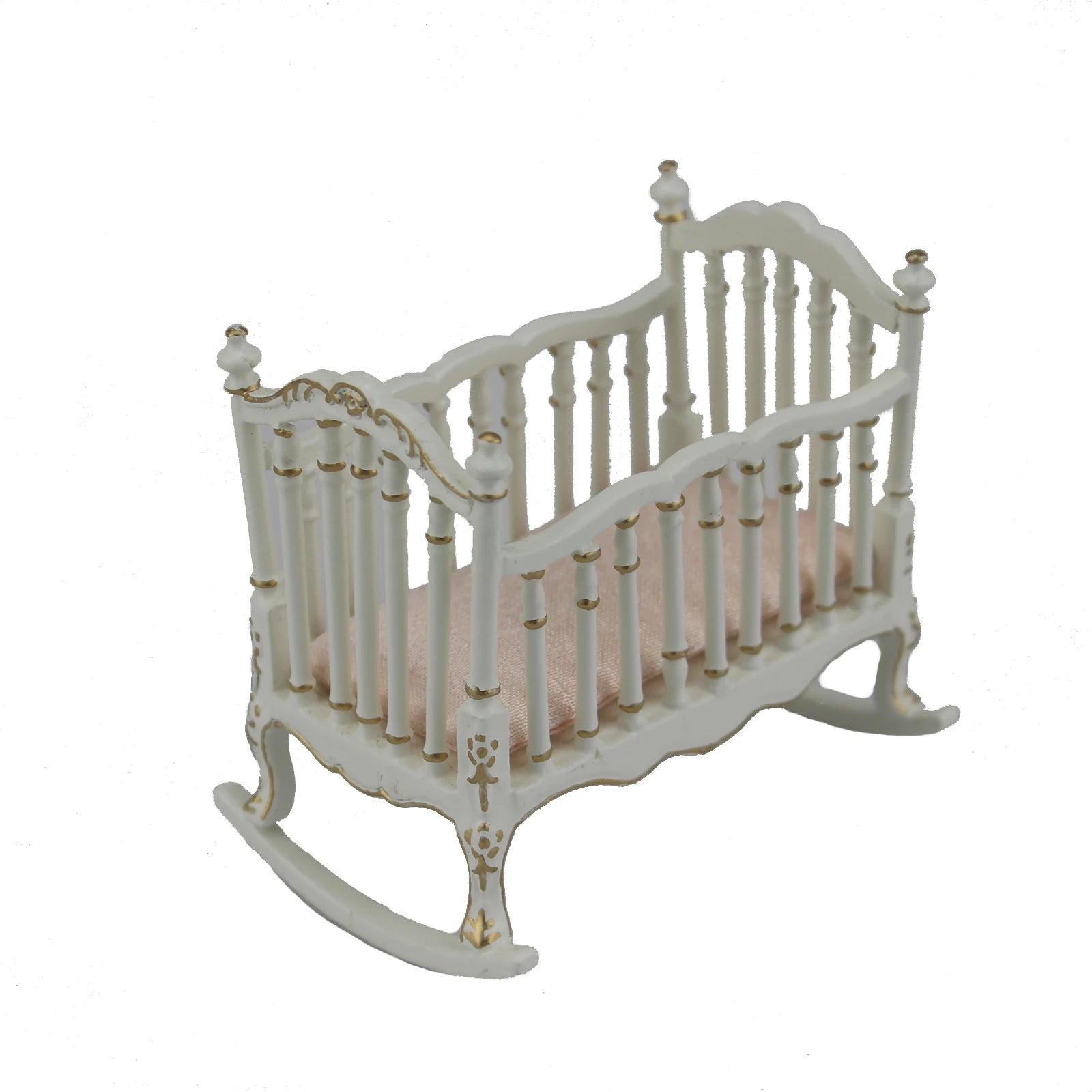 Cuna de madera blanca a escala 1:12 para muebles y accesorios de casa de muñecas