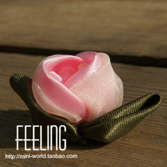 Accesorios para casa de muñecas en miniatura a escala 1:2, hechos a mano, tela satinada, decoración de tulipán rosa