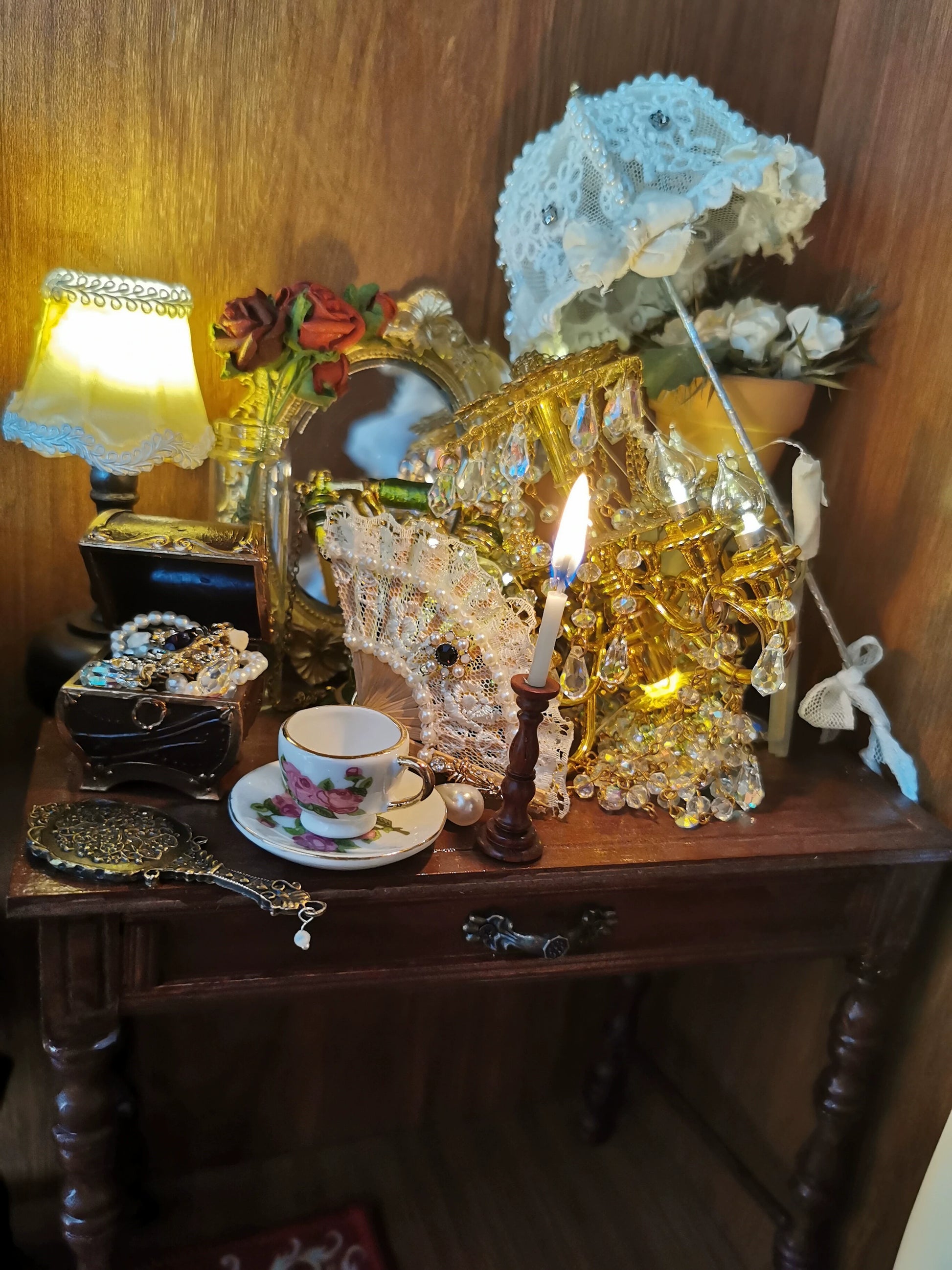 Enhance your dollhouse with this exquisite 1:4 scale BJD crystal chandelier. Perfect for miniature enthusiasts, this elegant lighting accessory features sparkling crystals and intricate details to add luxury to any dollhouse setting. Ideal for ball-jointed doll (BJD) displays or upscale miniature room decor.