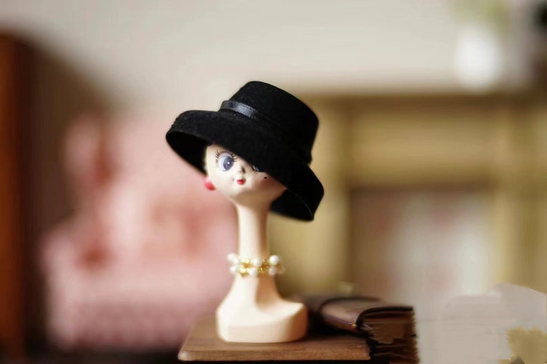 Cabeza de Twiggy en miniatura a escala 1:6, modelo BJD Ob11, Blythe GSC, sombrero, accesorios de joyería, juguete de exhibición de escritorio