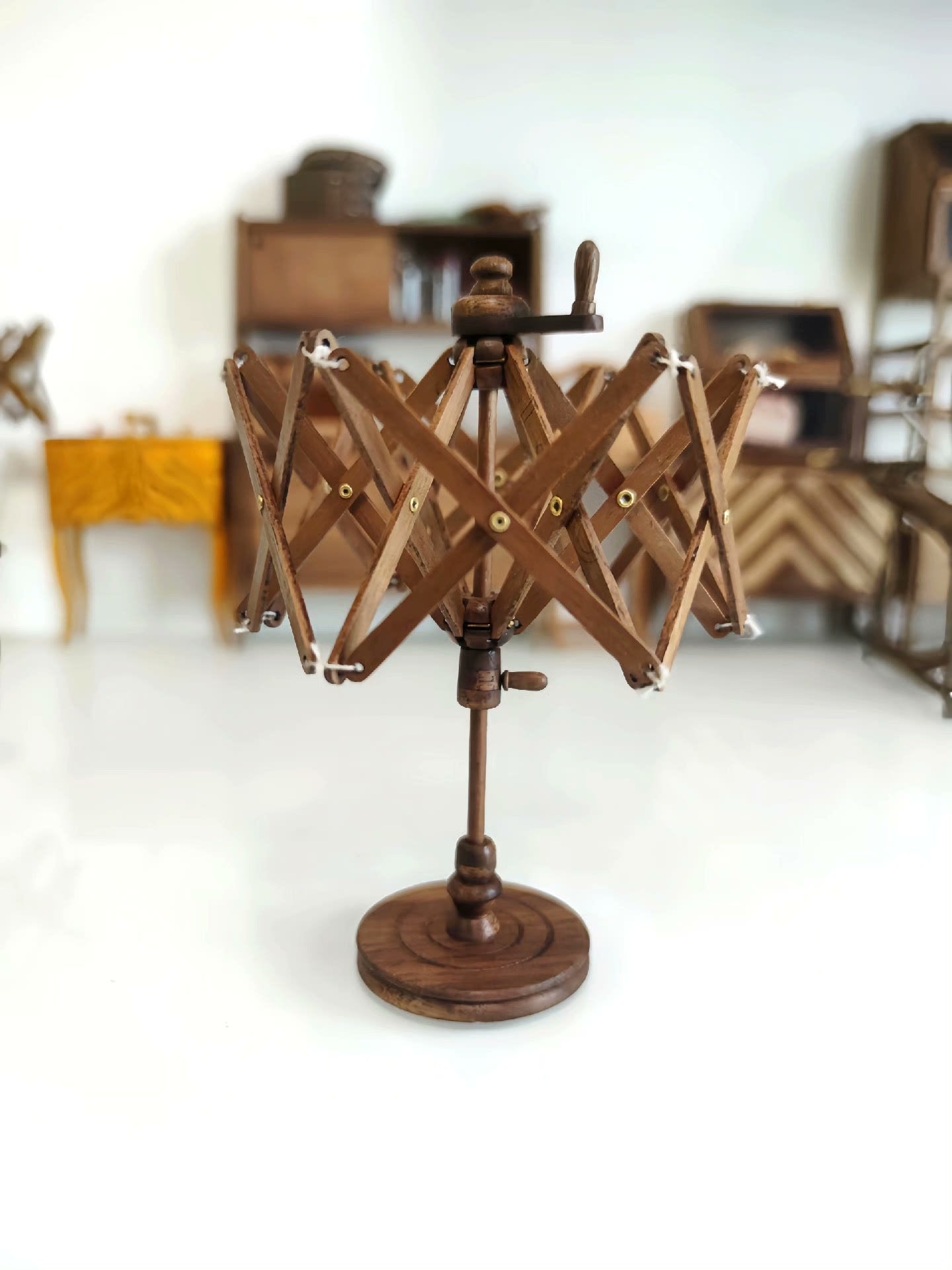 Accesorio para casa de muñecas en miniatura, utilería textil para escena, soporte giratorio, artesanía de madera, muebles BJD