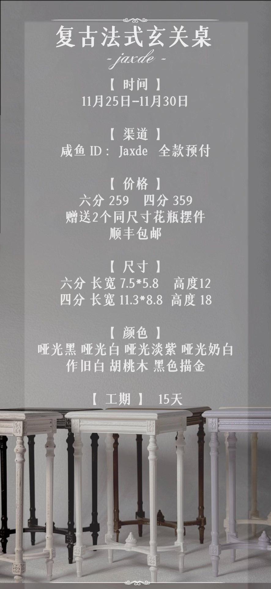 Mesa consola francesa vintage a escala 1:6, muebles para casa de muñecas en miniatura