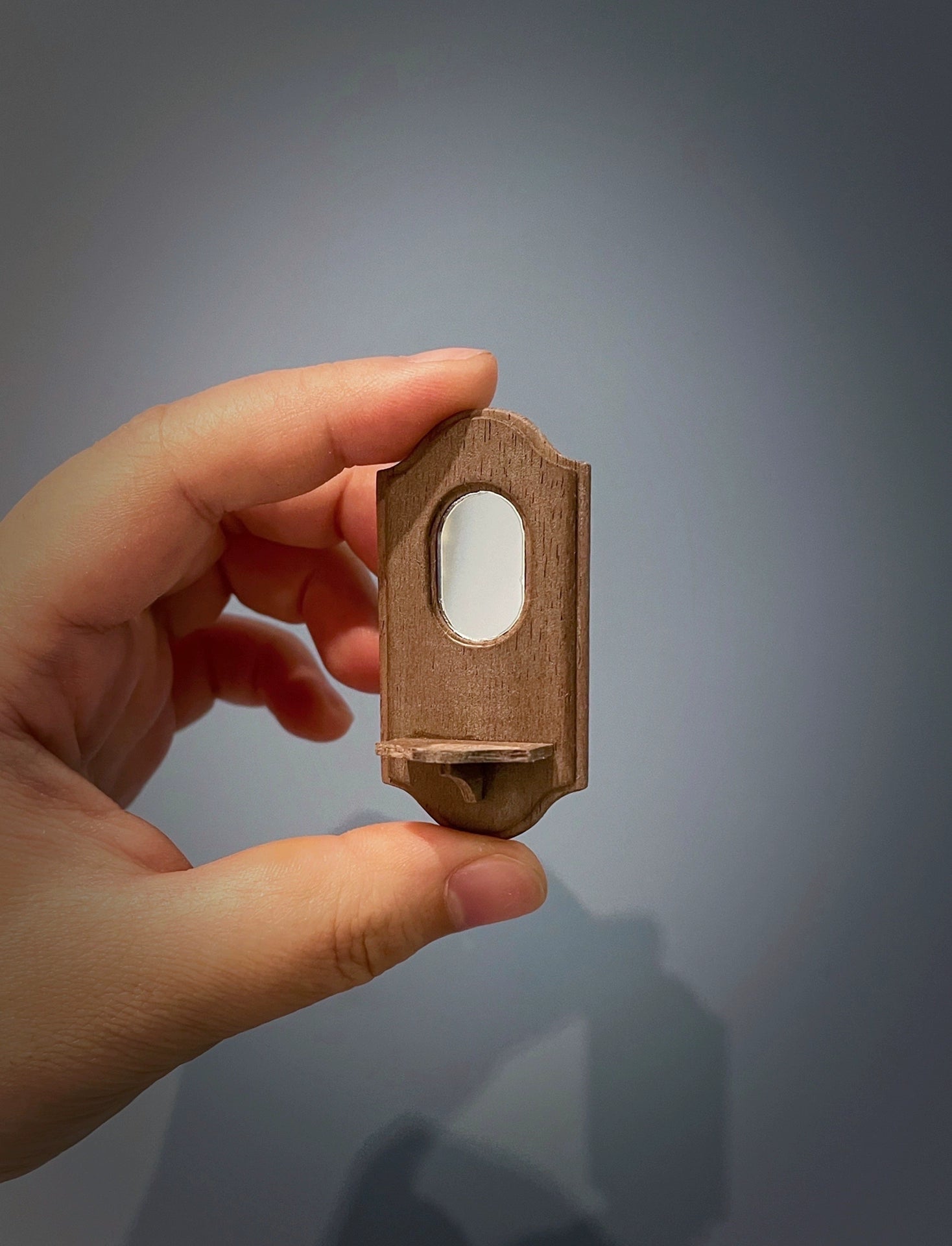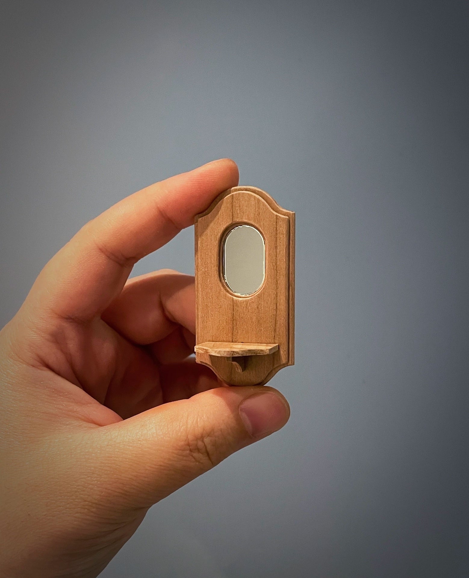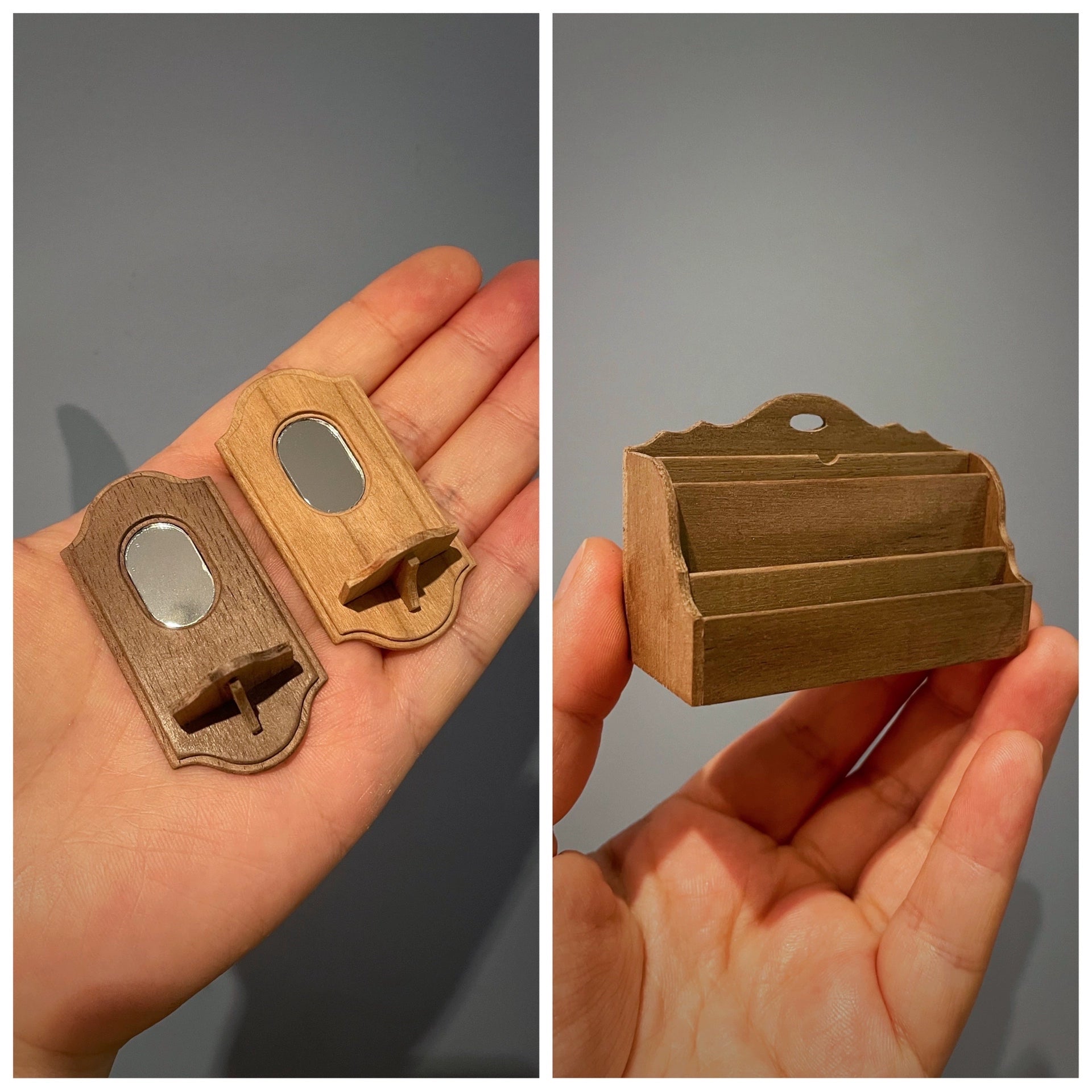 Accesorios en miniatura a escala 1:6 perfectos para coleccionistas de casas de muñecas. Decoración de pared artesanal de estilo vintage con espejo para velas y portacartas en acabados de madera de primera calidad.