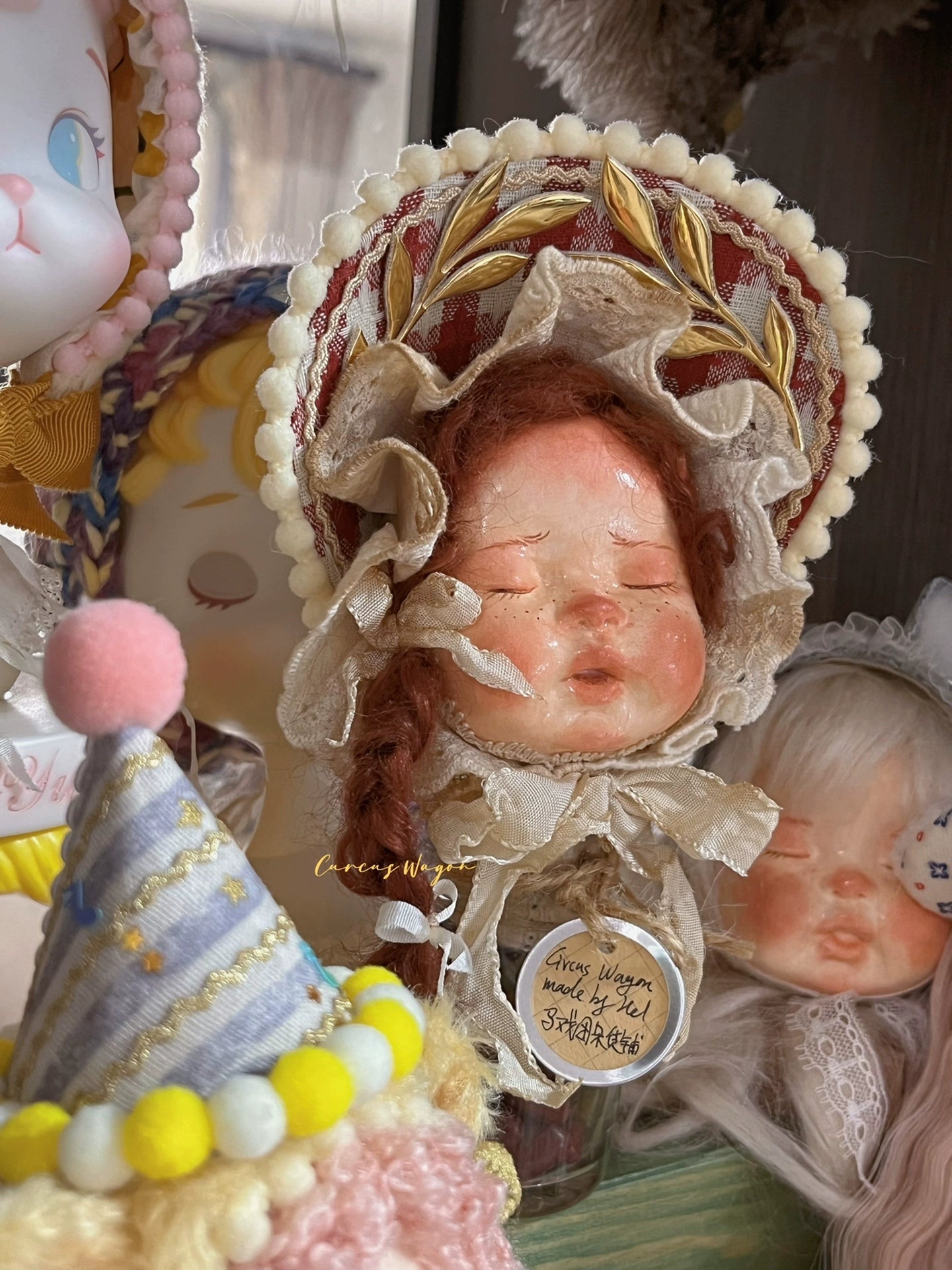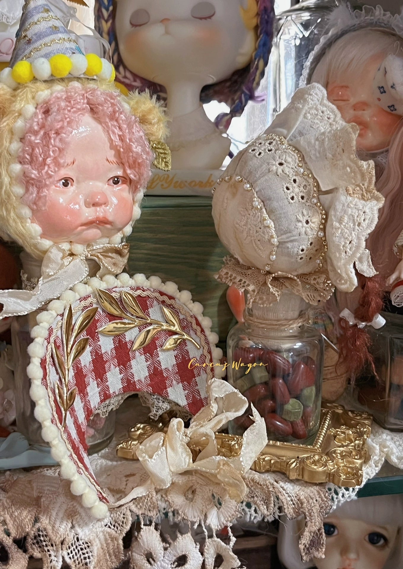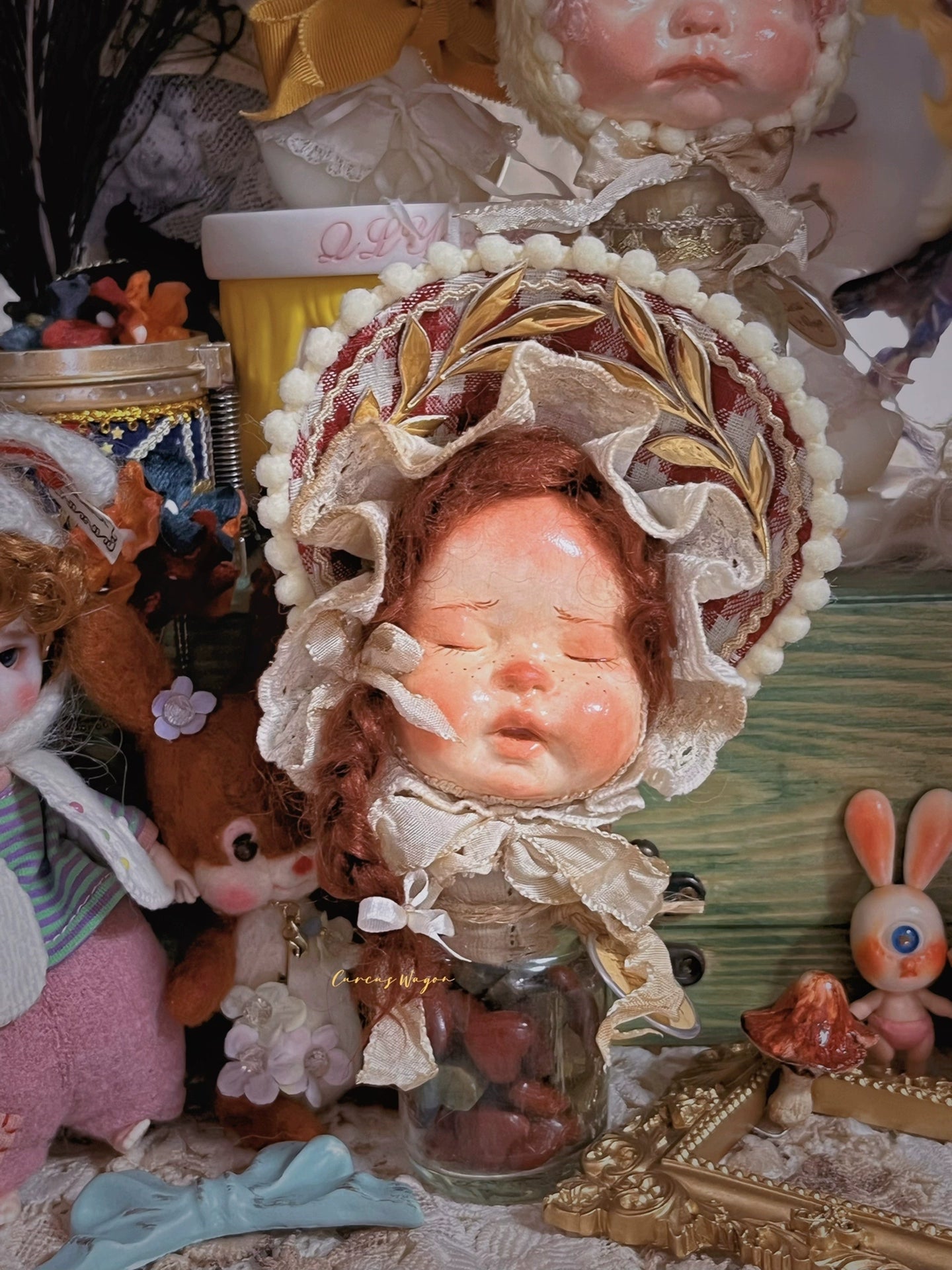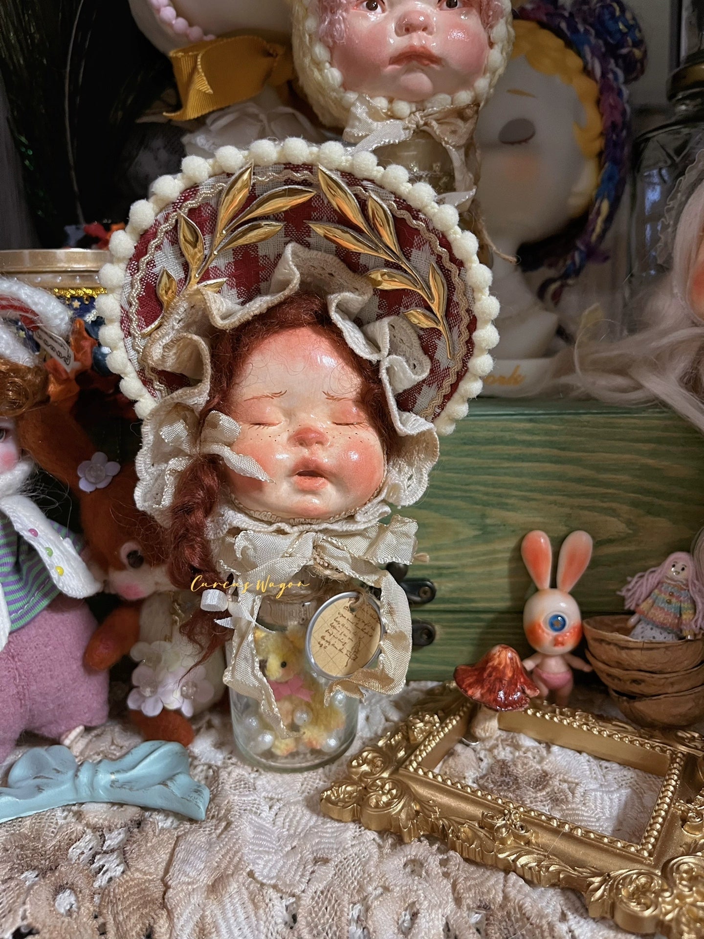 Casa de muñecas en miniatura hecha a mano, pieza de arte coleccionable, contenedor de almacenamiento único con cabeza de muñeca extraíble.