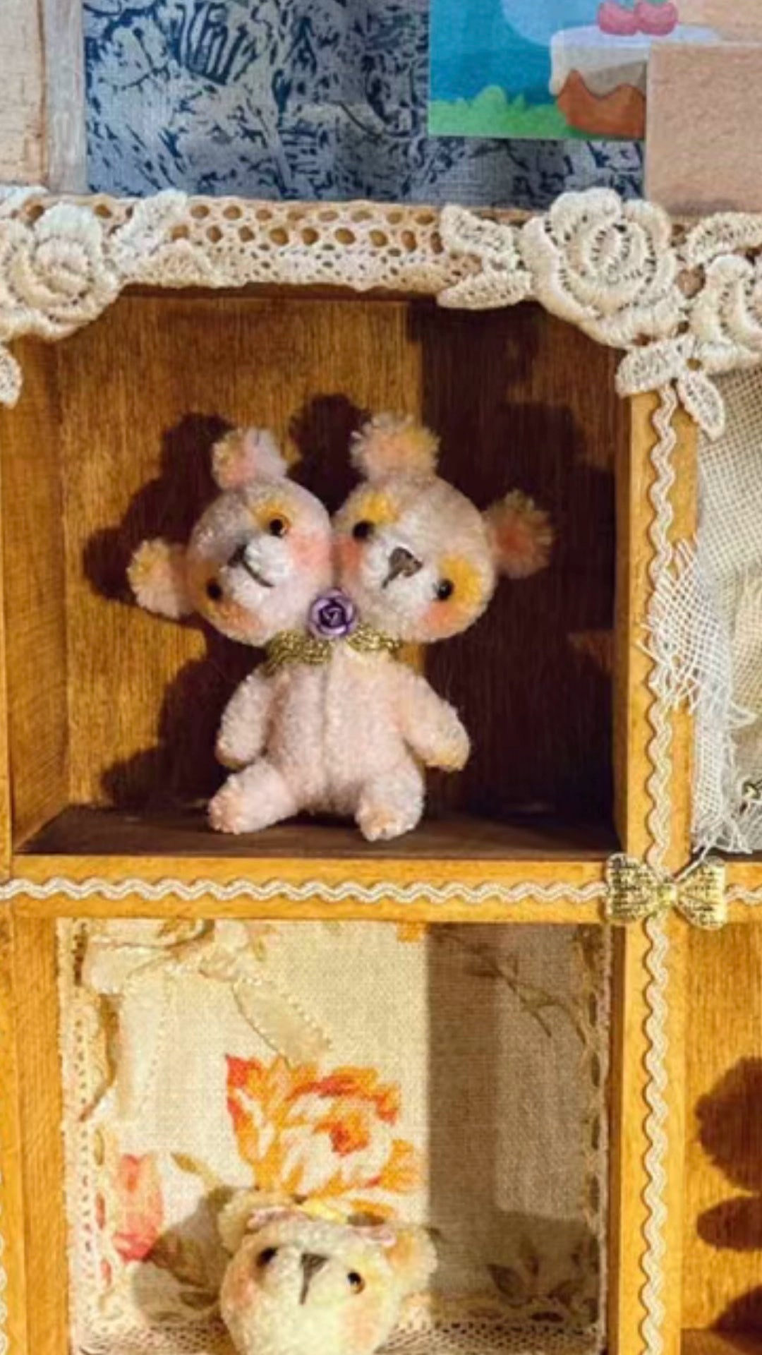 Muñeco de conejo oso de peluche de dos cabezas hecho a mano con hilo